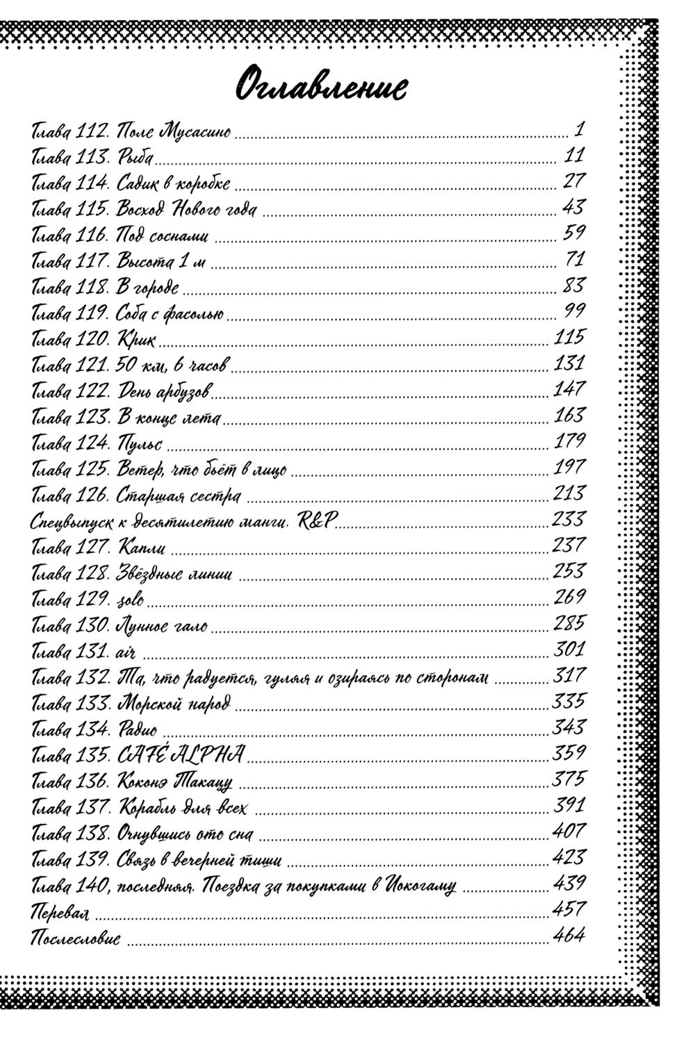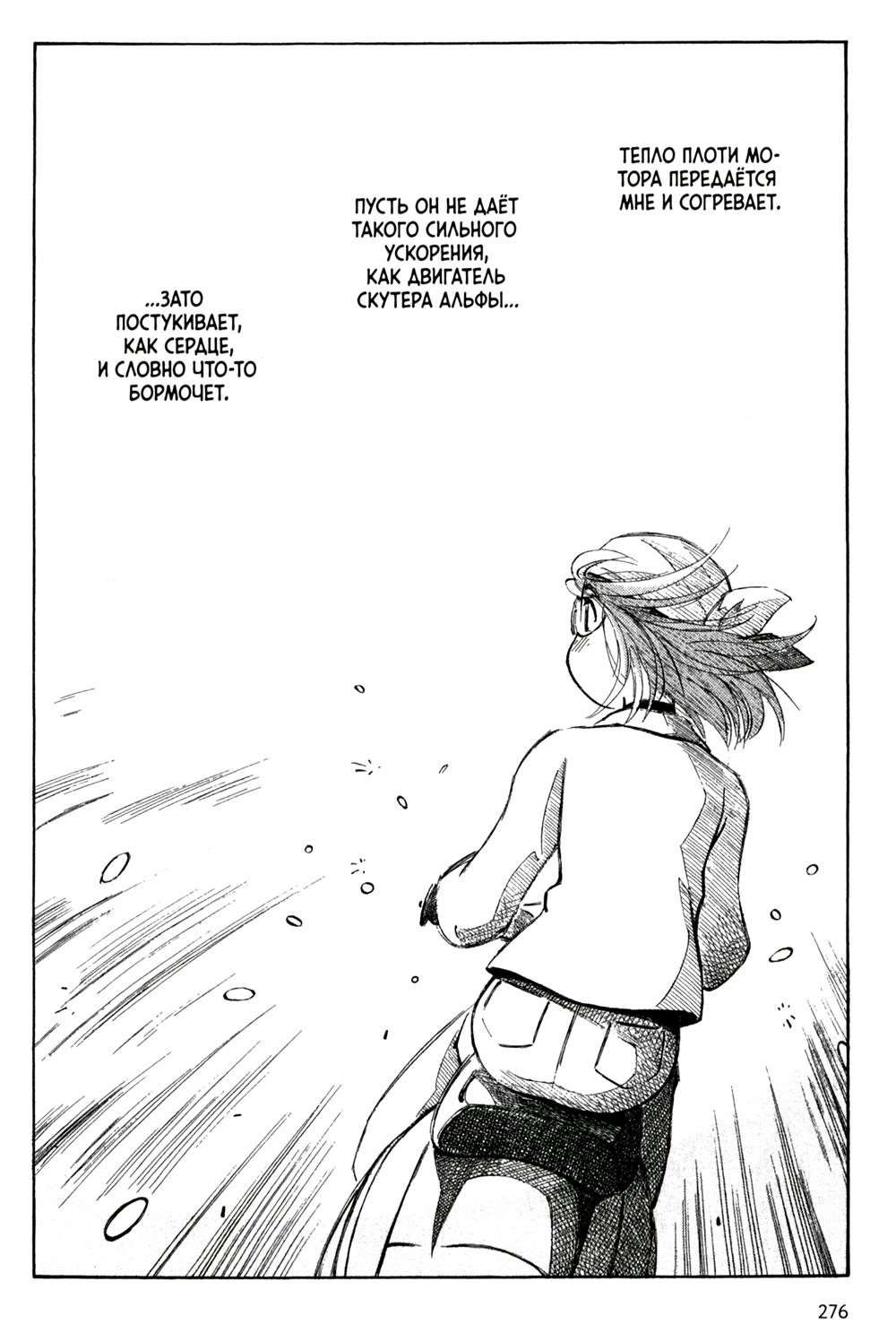 В заключительном томе «Поездки за покупками в Иокогаму» Хитоси Асинано подводит итоги своего путешествия, на которое у него ушло двенадцать лет. Мир Альфы продолжает неумолимо меняться: Такахиро и Макки незаметно повзрослели и упорхнули из родных мест, вокруг постепенно становится всё тише и тише, а посетители наведываются в кафе лишь изредка. Несмотря ни на что Альфа с оптимизмом смотрит в будущее и помнит обо всех, с кем ей довелось повстречаться. Присядем на бетонные плиты, что ещё хранят солнечное тепло, и насладимся вечерним спокойствием. И пусть ночь человечества будет мирным временем…| Издательство | Alt Graph |