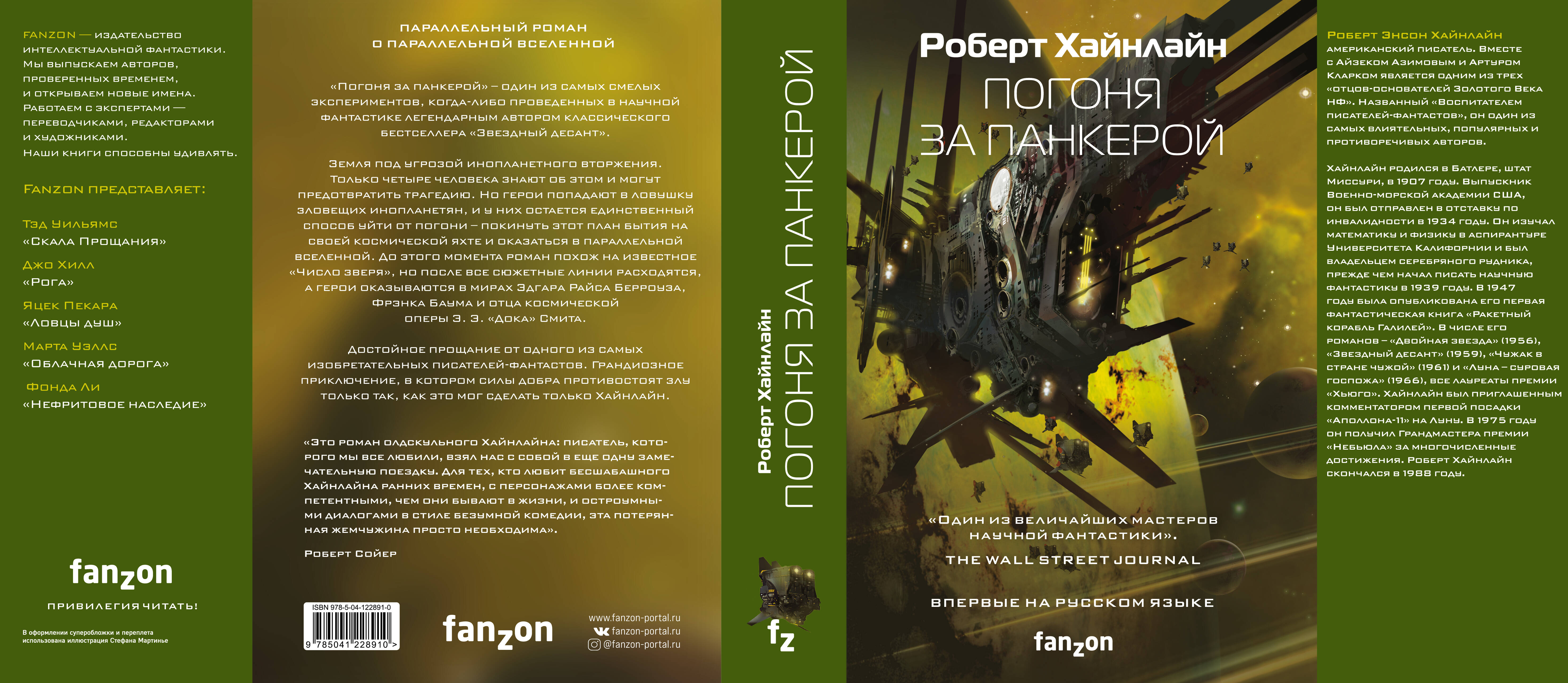 «Погоня за панкерой» - один из самых смелых экспериментов, когда-либо проведенных в научной фантастике легендарным автором классического бестселлера «Звездный десант». Земля под угрозой инопланетного вторжения. Только четыре человека знают об этом и могут предотвратить трагедию. Но герои попадают в ловушку зловещих инопланетян, и у них остается единственный способ уйти от погони - покинуть этот план бытия на своей космической яхте и оказаться в параллельной вселенной. До этого момента роман похож на известное «Число зверя», но после - все сюжетные линии расходятся, герои оказываются во вселенных «Погони за панкерой»: мирах Эдгара Райса Берроуза, Фрэнка Баума и отца космической оперы Э. Э. «Дока» Смита. Достойное прощание от одного из самых изобретательных писателей-фантастов, когда-либо живших: параллельный роман о параллельных вселенных, а также великое приключение, в котором силы добра противостоят злу только так, как это мог сделать только Хайнлайн. «Это роман олдскульного Хайнлайна: писатель, которого мы все любили, взял нас с собой в еще одну замечательную поездку. Для тех из нас, кто любит бесшабашного Хайнлайна ранних времен, с персонажами более компетентными, чем они бывают в жизни, и остроумными "в стиле безумной комедии" диалогами, эта потерянная жемчужина просто необходима». - Роберт Сойер «Ранее неопубликованная книга Грандмастера Роберта Хайнлайна будет востребована его многочисленными поклонниками и читателями, интересующимися историей жанра. Роман основан на той же предпосылке и содержит тех же персонажей, что и его "Число зверя". Действительно, начало книги идентично. Но затем текст переходит в совершенно другую историю, что вполне уместно, поскольку книги основаны на путешествиях по альтернативным мирам. Как и в "Звере", наши бесстрашные исследователи путешествуют по различным вымышленным вселенным: Барсуму Берроуза, Стране Оз Баума, вселенной Ленсменов "Дока" Смита, сталкиваясь с идеей, что все вымышленные вселенные существуют где-то в мультивселенной». - Booklist «Межличностных отношений, сексуальной напряженности и радостного возбуждения - предостаточно. Семейные иерархии или общественное преклонение перед ними напоминают мораль пятидесятых годов, но не до такой степени, чтобы быть удушающим. Во всяком случае, они мастерски используются для поддержания любовного конфликта. Я больше ничего не расскажу; все поклонники Хайнлайна заслуживают самим пережить это чудесное возвращение». - Manhattan Book Review| Издательство | Эксмо |