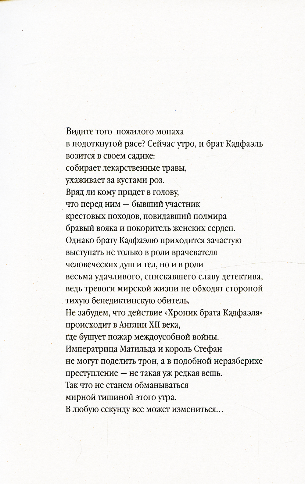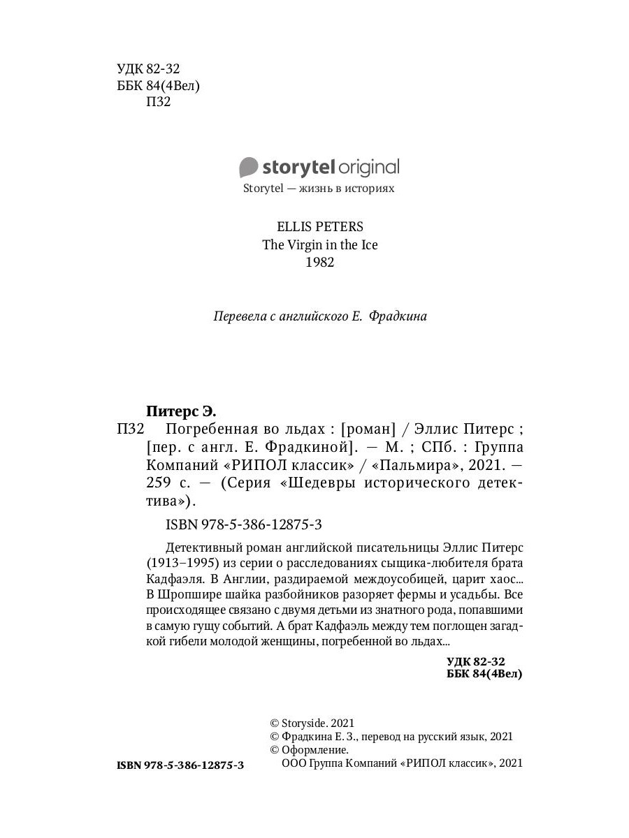 Детективный роман английской писательницы Эллис Питерс (1913-1995) из серии о расследованиях сыщика-любителя брата Кадфаэля. В Англии, раздираемой междоусобицей, царит хаос... В Шропшире шайка разбойников разоряет фермы и усадьбы. Все происходящее связано с двумя детьми из знатного рода, попавшими в самую гущу событий. А брат Кадфаэль между тем поглощен загадкой гибели молодой женщины, погребенной во льдах...| Издательство | Рипол Классик |