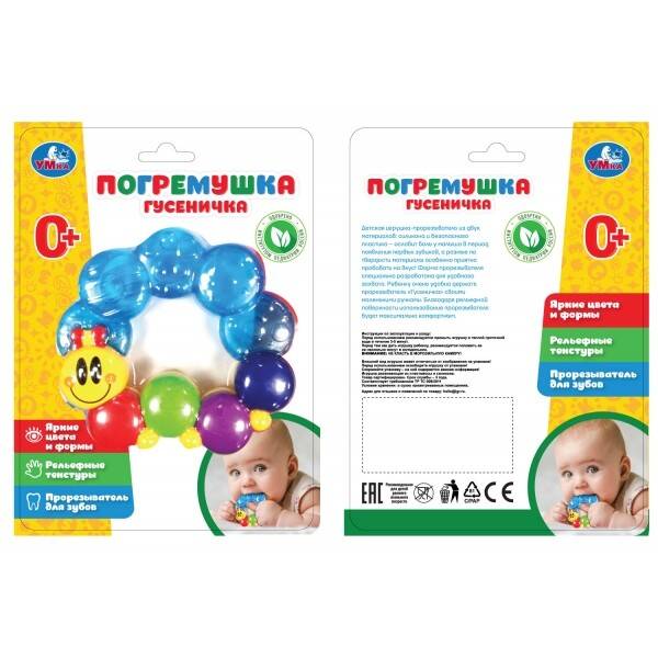 Аннотация: Погремушка гусеничка прорезыватель на карт. (русс. уп.) Умка в кор.4*24шт