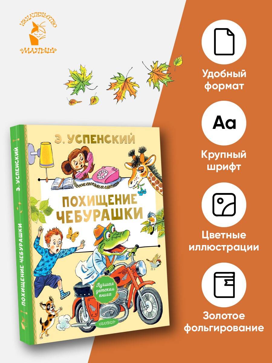 Крокодил Гена и Чебурашка - знаменитые герои произведений детского писателя Эдуарда Успенского. В сказке «Похищение Чебурашки» авантюрные приключения двух друзей становятся ещё более захватывающими и опасными. На этот раз жизнь Чебурашки кардинально меняется, когда из тесной телефонной будки он переезжает в просторную квартиру и получает в подарок целых пять телевизоров! А вот к чему приведёт Чебурашку бесконечный просмотр телепередач - читатель узнает из этой книги. Яркие иллюстрации нарисовали Сергей Бордюг и Наталия Трепенок. Для младшего школьного возраста.| Издательство | Издательство "АСТ" |