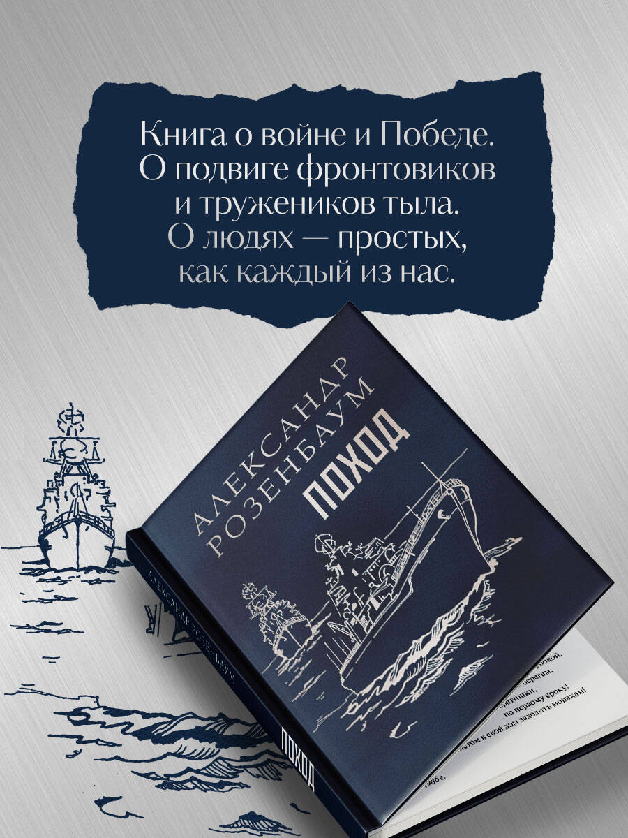 «Поход» - книга о войне и Победе. О подвиге фронтовиков и тружеников тыла. О людях - простых, как каждый из нас. С одним лишь отличием: им выпала нелёгкая судьба - воевать и победить. Остаться в истории, летописях и хрониках. А главное - в памяти. Нашей с вами памяти. И, конечно же, эта книга о мире, который обязательно настанет, когда мы найдём друг друга в облаках непониманья. Ленинградец Александр Розенбаум - плоть от плоти поэт и певец своего Великого города, морской столицы России. Именно с его знаменитых песен, посвящённых морякам, их бесстрашию и дальним походам, начинается данное издание. Многие произведения публикуются впервые.| Издательство | ООО "Издательство "Эксмо" |
