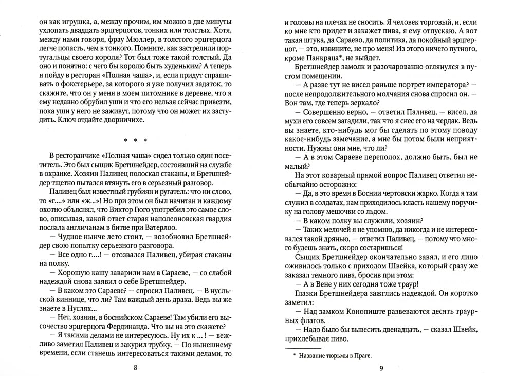 «Похождения бравого солдата Швейка» (1921-1923) - настоящее сокровище мировой литературы и самый популярный чешский роман в мире, переведенный на 58 языков. Карикатурный персонаж Йозеф Швейк, в прошлом пехотинец, а ныне торговец крадеными собаками с поддельными родословными, с началом Первой мировой войны в патриотическим порыве отправляется на призывной пункт. Невезучий, чересчур разговорчивый, да еще и уволенный в прошлом с военной службы по причине слабоумия, Швейк оказывается чуть ли не самым здравомыслящим персонажем на фоне всеобщей глупости и умопомешательства. Книгу можно в равной степени воспринимать как большую, полную абсолютно неподражаемого народного лукавства солдатскую байку и как классическое произведение литературы.| Издательство | Т8 RUGRAM |