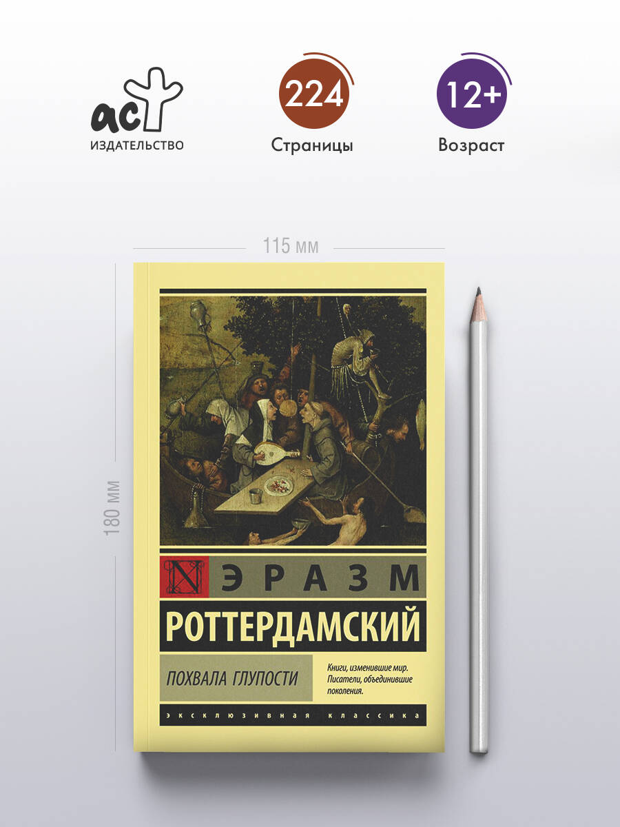 "Похвалу Глупости" вполне можно назвать "международным супербестселлером эпохи Возрождения", ведь сразу после первой публикации в Париже в 1511 году она выдержала только во Франции 7 переизданий, а всего переиздавалась в разных странах при жизни автора более 40 раз. Сам Эразм, считавший свою блестящую по форме и содержанию сатиру не более чем забавным литературным пустяком, был немало поражен столь громким успехом. В построенном в форме монолога произведении главной героиней выступает Мория (Глупость), открывая читателю свои тайны, перечисляя заслуги, восхваляя саму себя и, главное, насмехаясь над многими "мудрецами". В рассуждениях о своем предназначении она затрагивает вопросы искусства, культуры, устройства общества и многие другие.| Издательство | ИЗДАТЕЛЬСТВО "АСТ" |