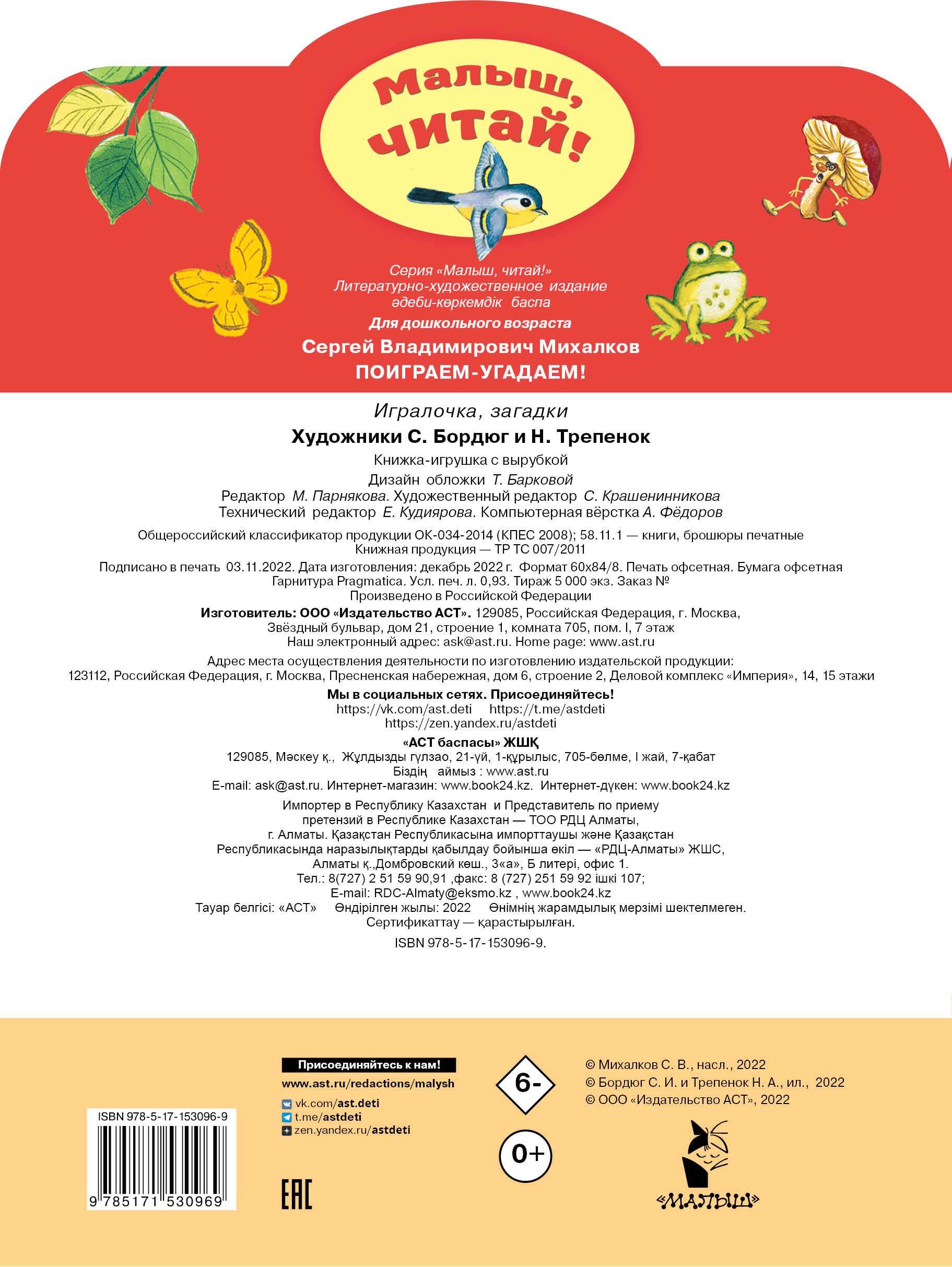 Поиграй и отгадай самые весёлые загадки Сергея Владимировича Михалкова с рисунками С. Бордюга и Н. Трепенок. Загадки развивают речь, мышление, логику и сообразительность.| Издательство | ИЗДАТЕЛЬСТВО "АСТ" |