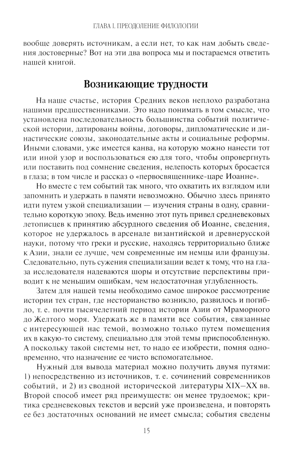 Настоящая книга является продолжением двух более ранних работ Л.Н. Гумилева - «Хунну» и «Древние тюрки». В ней освещается один из малоизученных периодов истории кочевых народов, вскрываются процессы, приведшие к возникновению Монгольской империи, и история появления самого «потрясателя Вселенной» Чингисхана. Речь идет об истории Великой степи от распада Тюркского каганата в VIII в. до образования Монгольской империи в первой половине XIII в. Все три книги образуют «Степную трилогию», задуманную автором еще в годы учебы в Ленинградском университете. На первый взгляд книга посвящена историческому курьезу, каковым является вымышленное тамплиерами «царство пресвитера Иоанна» в центре Азии, слух о котором достиг средневековой Европы в середине XIII в. Но за этим курьезом скрывалась целая эпоха в истории кочевых народов Центральной Азии, полная важных и драматических событий, результаты которых оказали огромное влияние на весь ход всемирной истории. Эти события породили легенду о пресвитере Иоанне и его царстве; они и являются объектом исследования. Автор предисловия к книге Л.Н. Гyмилева «Поиски вымышленного царства. Легенда о "государстве пресвитера Иоанна"» - профессор С.И. Руденко. Книга снабжена списком литературы, указателем имен исторических лиц, указателем имен исследователей и цитируемых авторов, указателем географических названий и указателем этнонимов. Книга адресована всем читателям, любящим историю с ее многочисленными загадками и ценящим авторские методы исторических исследований.
