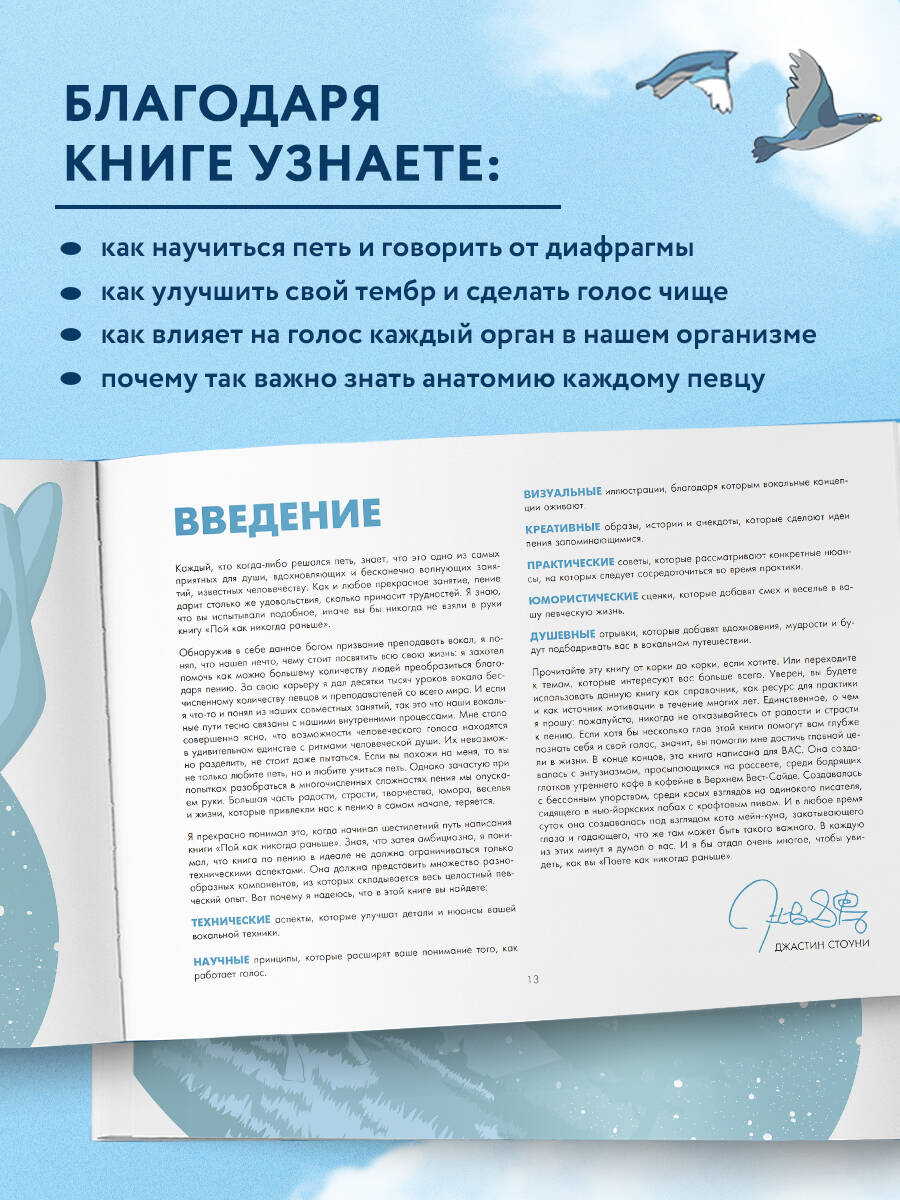 Преподаватель лауреатов премий «Грэмми», «Эмми», «Тони» и «Оскар» Джастин Стоуни раскрывает профессиональные секреты, как научиться петь не только технично, но и с удовольствием. Самоучитель «Пой как никогда раньше» сочетает в себе юмористический, легкий подход и вместе с тем обширнейшую базу необходимых для певца навыков: от постановки дыхания и избавления от зажимов в теле до актерского мастерства и даже специальной вокальной диеты. В этой книге вы найдете всю нужную информацию и вдохновение: • технические аспекты пения; • научные принципы о том, как работает голосовой аппарат; • практические советы с конкретными примерами из практики Джастина Стоуни; • креативные образы для поиска собственного вокального пути; • яркие иллюстрации и забавные сценки, которые добавят смех и веселье в вашу певческую жизнь. «Канули в небытие книги по педагогике прошлых лет, те, что понятны исключительно педагогам по оперному вокалу и профессорам. В книге "Пой как никогда раньше" Джастину удается раскрыть перед читателем все знания, советы, хитрости и бесконечные возможности человеческого голоса, привнося юмор и веселье в каждую главу, напоминая нам, что мы должны жить, познавая радость! Невероятно доступная для певцов всех уровней, эта книга является обязательной к прочтению каждому, кто занимается пением!» - Линдси Мендез, театральная и киноактриса, певица, лауреат премии «Тони» Пусть эта книга станет вашим ключом к новым высотам. Изучайте ее от корки до корки или выбирая интересующий вас раздел, будто в справочнике. Она станет вашим настольным помощником и мотиватором. Прислушайтесь к опытным советам, получайте удовольствие от процесса, и тогда вы точно сможете петь как никогда раньше! В России книга издается под научной редактурой преподавателя высшей категории по вокальным стилям, лауреата премии музыкального фонда Зальцбурга, солистки музыкальных театров Санкт-Петербурга Елизаветы Боковой.| Издательство | ООО "Издательство "Эксмо" |