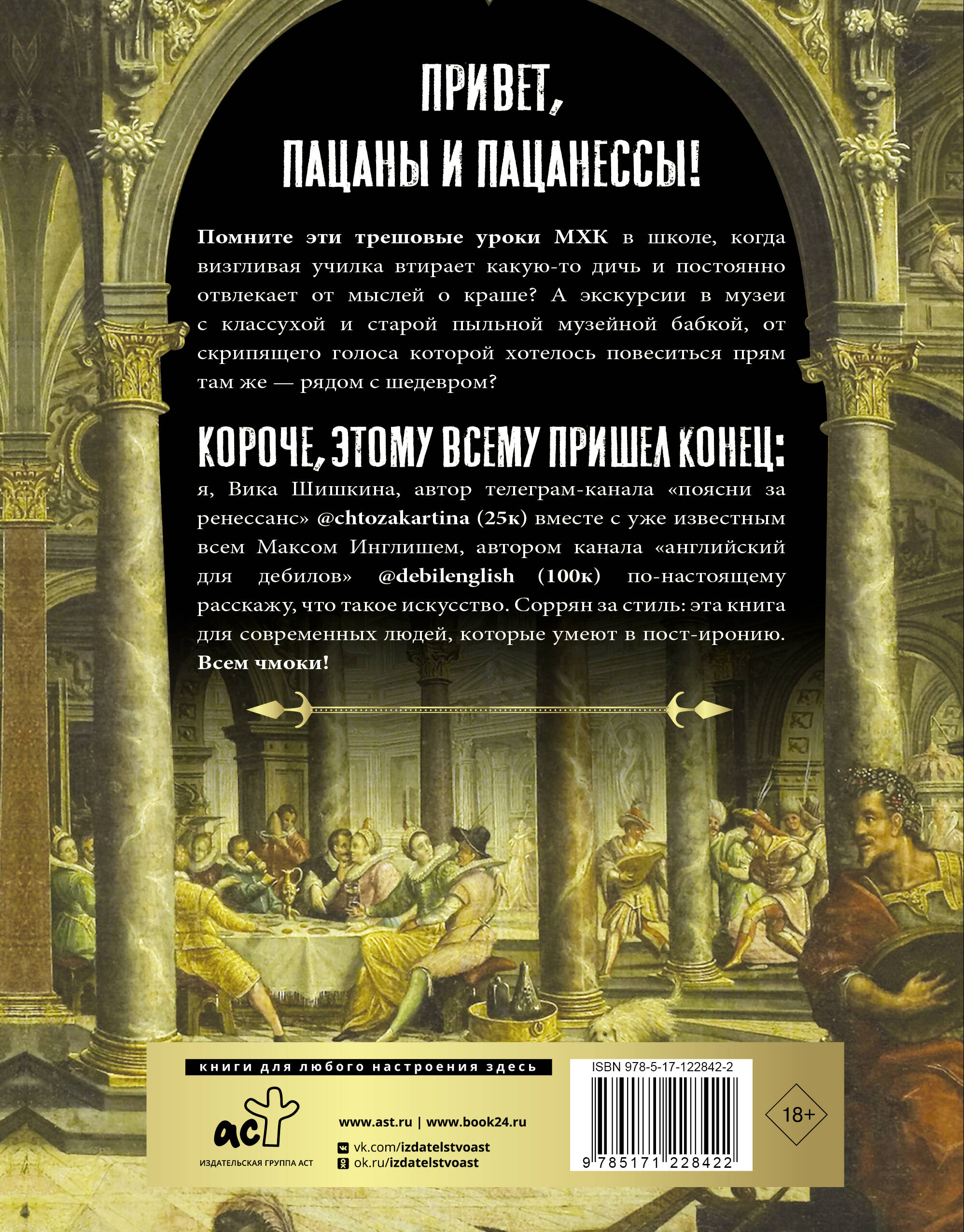 Поговорим об искусстве по понятиям! Для тех, кто не в теме: книга разложит для вас по полочкам искусство Ренессанса - познакомит с полотнами Рафаэля, Боттичелли, Микеланджело и других мастеров, которые топили за красоту и тоже неплохо умели хайпить - и у них это круто получалось! Просто так взять и создать шедевр? Изи! В искусстве Возражения овердофига интересных персонажей и сюжетов. Каждая картина как погружение в новый мир, красочный и необычный. Не ждите случайных пруфов - открывайте книгу и знакомьтесь с искусством легко и весело, чтобы потом блеснуть эрудицией в кругу френдов. Разбираться в искусстве - модно!| Издательство | ИЗДАТЕЛЬСТВО "АСТ" |