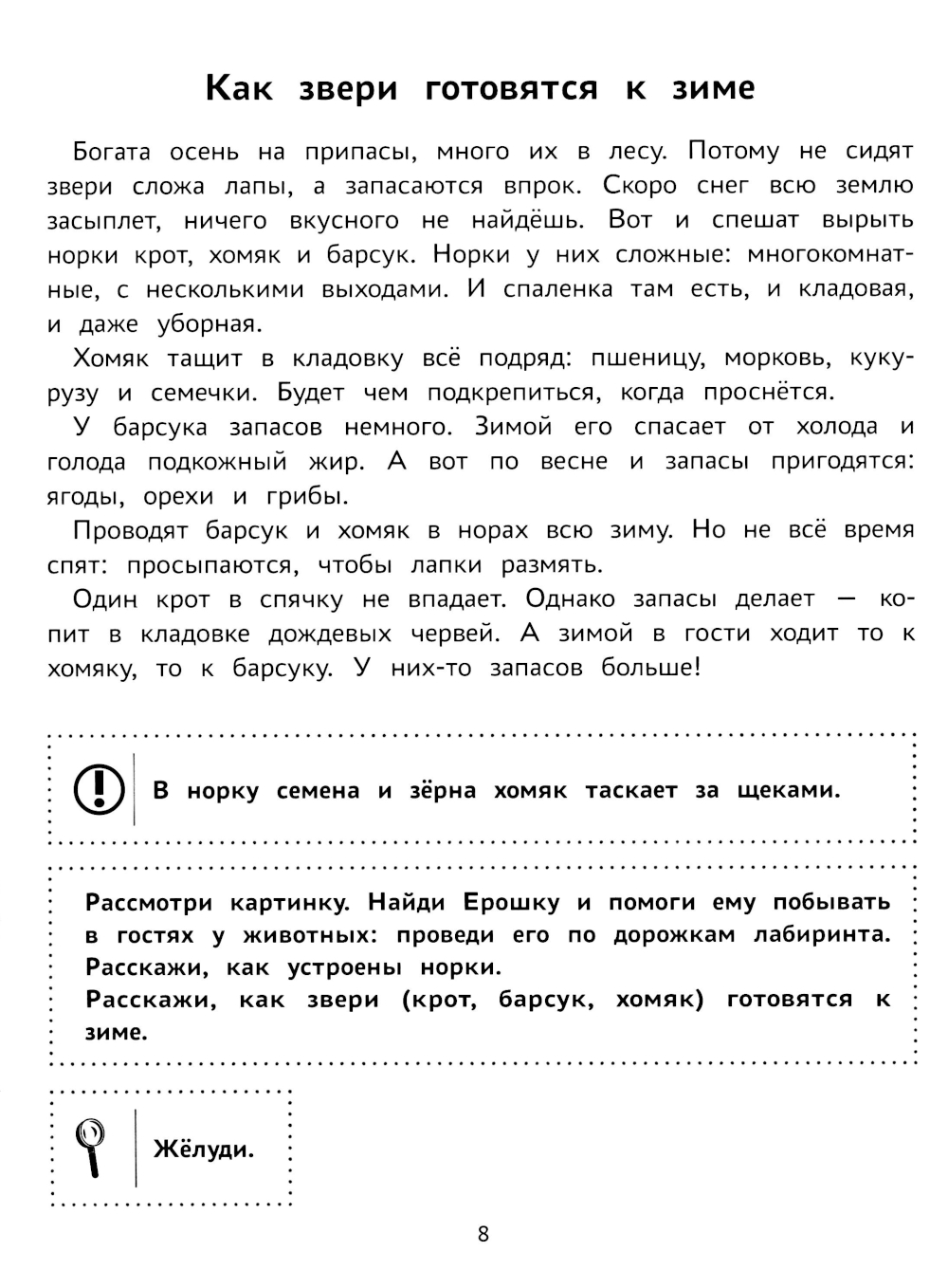 С этой книгой вы отправитесь в необычное, увлекательное путешествие по лесу с любопытным и шустрым мышонком Ерошкой, насладитесь красотой леса в разное время года, познакомитесь с лесными жителями, раскроете их тайны и узнаете о правилах поведения в лесу. Читая стихотворения и выполняя разнообразные задания, ребёнок будет развивать речь и мышление, внимание и память, закрепит навык счёта и расширит словарный запас. Эта книга дарит настроение! Читайте истории, разгадывайте загадки, узнавайте интересные факты и обсуждайте их вместе с ребёнком в семейном кругу и на занятиях в детском саду. Книга рекомендуется заботливым родителям и воспитателям детских садов в качестве дидактического пособия.| Издательство | Феникс |