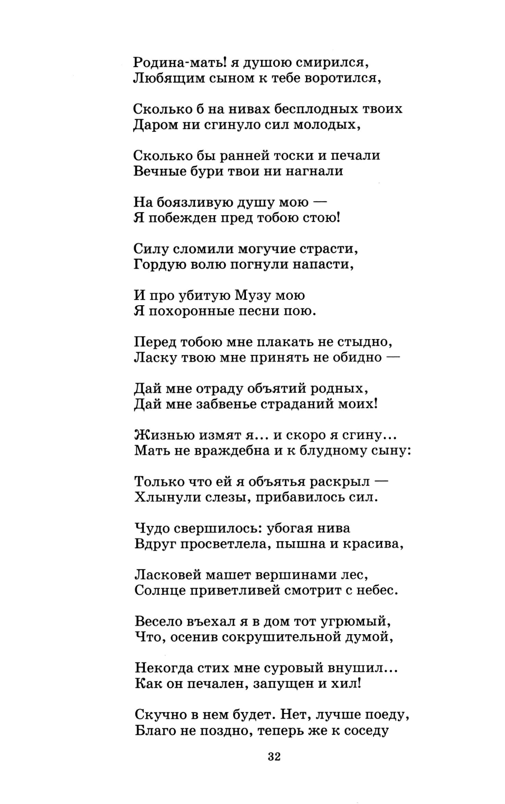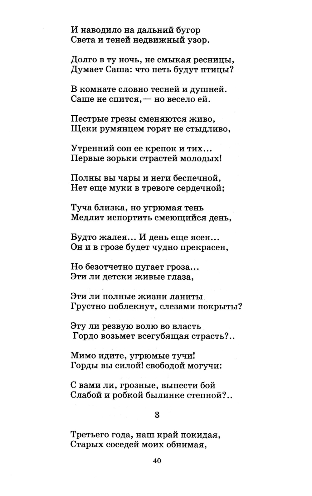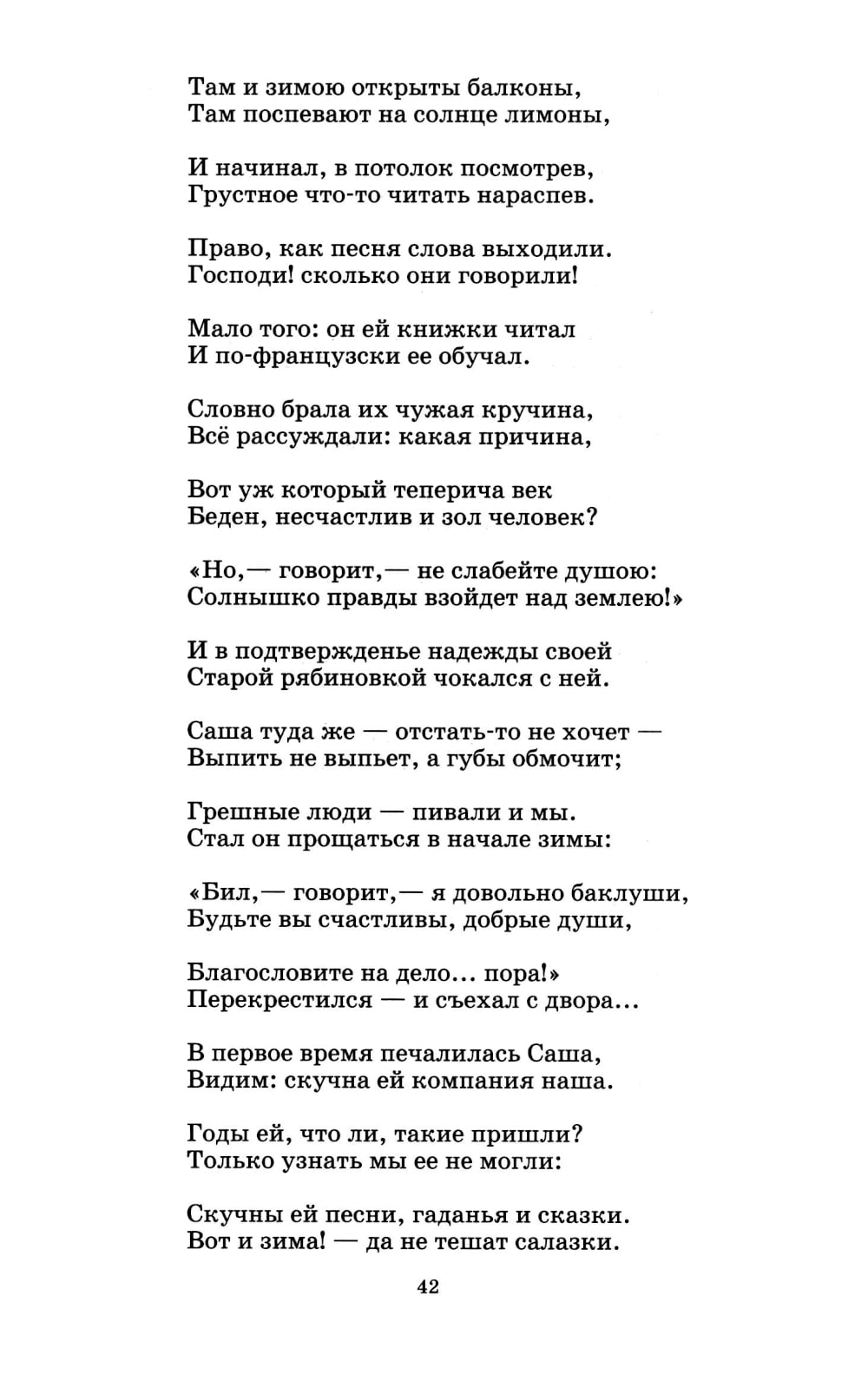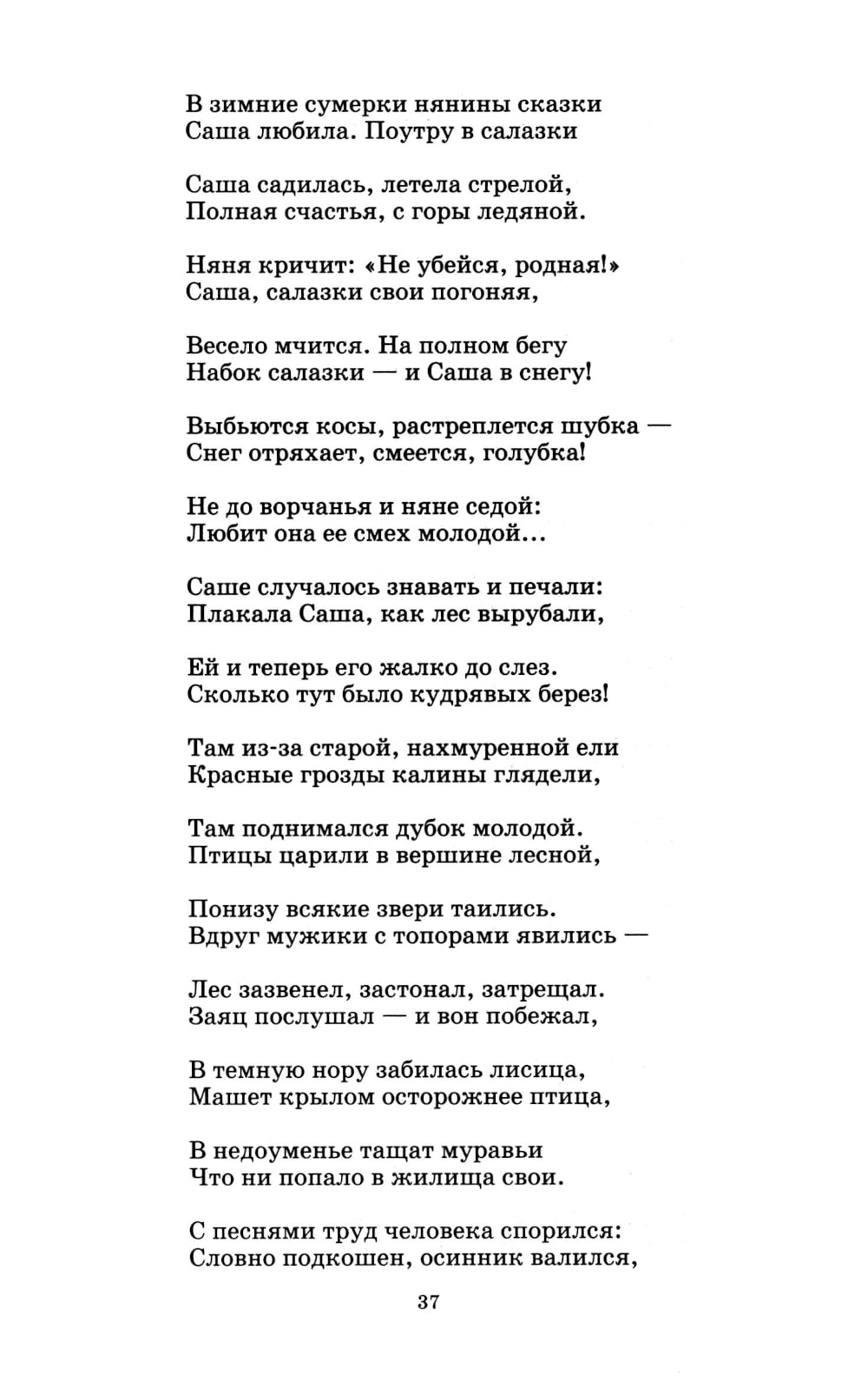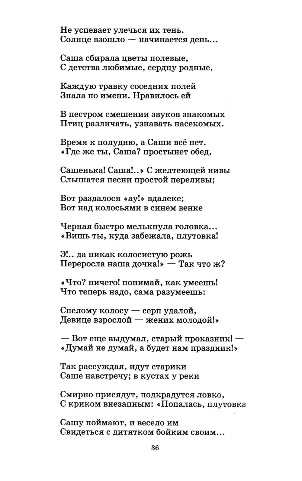 В сборник включены поэмы «Саша», «Коробейники», «Русские женщины» и др. Для старшего школьного возраста. Текст представлен без сокращений, напечатан на хорошей бумаге крупным шрифтом и содержит черно-белые иллюстрации, помогающие создать атмосферу, но не переключающие внимание ребенка.