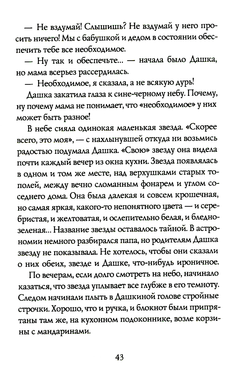 Девятиклассница Даша, с одной стороны, похожа на всех своих ровесников, а с другой - всё-таки отличается от них. Как многие одноклассники, она ненавидит химию. Но всегда радуется урокам литературы. Она участвует во Всероссийской олимпиаде по этому предмету и заводит там новых друзей из разных городов. Одновременно переживает расставание родителей, потерю близкого человека, ждёт первой любви, но не замечает, что она уже рядом. А ещё Даша пишет стихи. И наблюдает за всем происходящим вокруг через призму поэзии. Хотя порой мир вокруг совсем не поэтичен... 15-летняя героиня размышляет о своих стихах, о том, когда человека можно назвать поэтом, и пока не находит слов для себя: она уже поэт? Или ещё нет? А кто же она? Чего стоят её стихи? Девушка получает самую неожиданную подсказку, какую можно вообразить. В тонкой, светлой повести Татьяны Март каждый юный читатель, а особенно - читательница, узнает себя, как в другой книге автора, выходившей в «КомпасГиде», узнают себя девчонки помладше. Вышедшая несколько лет назад чудесная книжка Татьяны Март «Анька М и Анька П» до сих пор пользуется успехом у 11-13-летних читателей, и мы уверены, что «Поэтка» будет так же любима подростками средней и старшей школы. Художница Анна Любимова, оформившая книгу, очень точно попала в настроение повести и поэтичный образ героини.| Издательство | ИД КомпасГид |