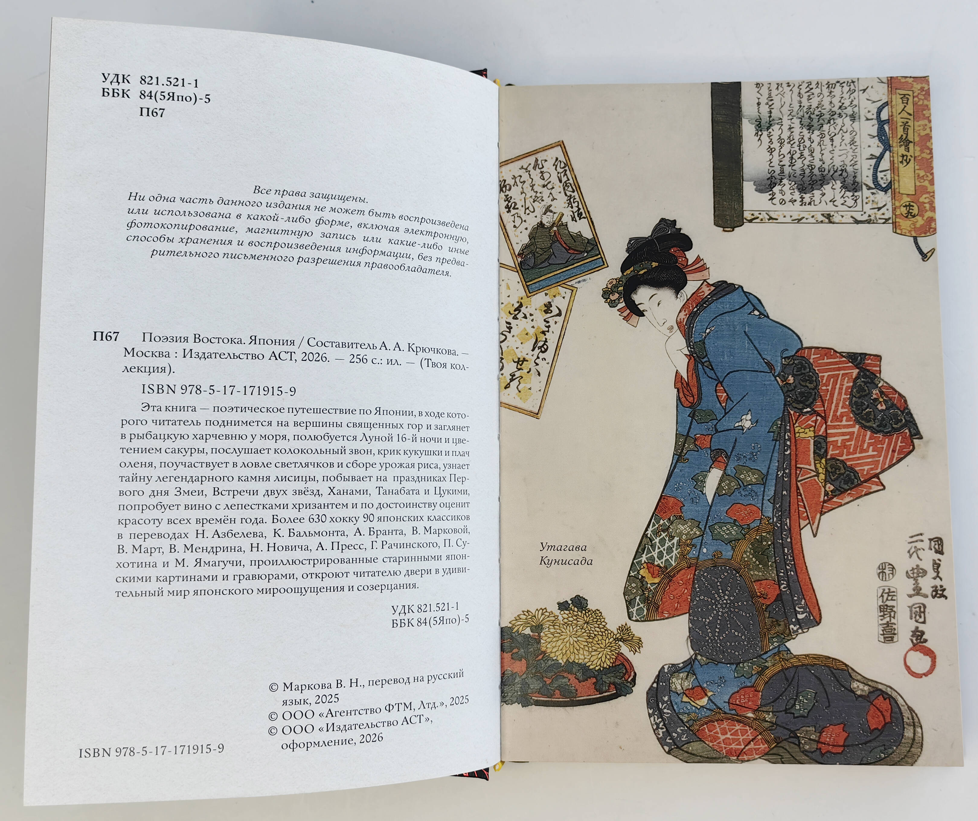 Эта книга - поэтическое путешествие по Японии, в ходе которого читатель поднимется на вершины священных гор и заглянет в рыбацкую харчевню у моря, полюбуется Луной 16-ой ночи и цветением сакуры, послушает колокольный звон, крик кукушки и плач оленя, поучаствует в ловле сверчков и сборе урожая риса, узнает тайну легендарного камня лисицы, побывает на праздниках Первого дня Змеи, Встречи двух звёзд, Ханами, Танабата и Цукими, попробует вино с лепестками хризантем и по достоинству оценит красоту всех времён года. Более 630 хокку 90 японских классиков в переводах Н. Азбелева, К. Бальмонта, А. Бранта, В. Марковой, В. Март, В. Мендрина, Н. Новича, А. Пресс, Г. Рачинского, П. Сухотина и М. Ямагучи, проиллюстрированные 125 старинными японскими картинами и гравюрами, откроют читателю двери в удивительный мир японского мироощущения и созерцания.| Издательство | Издательство "АСТ" |