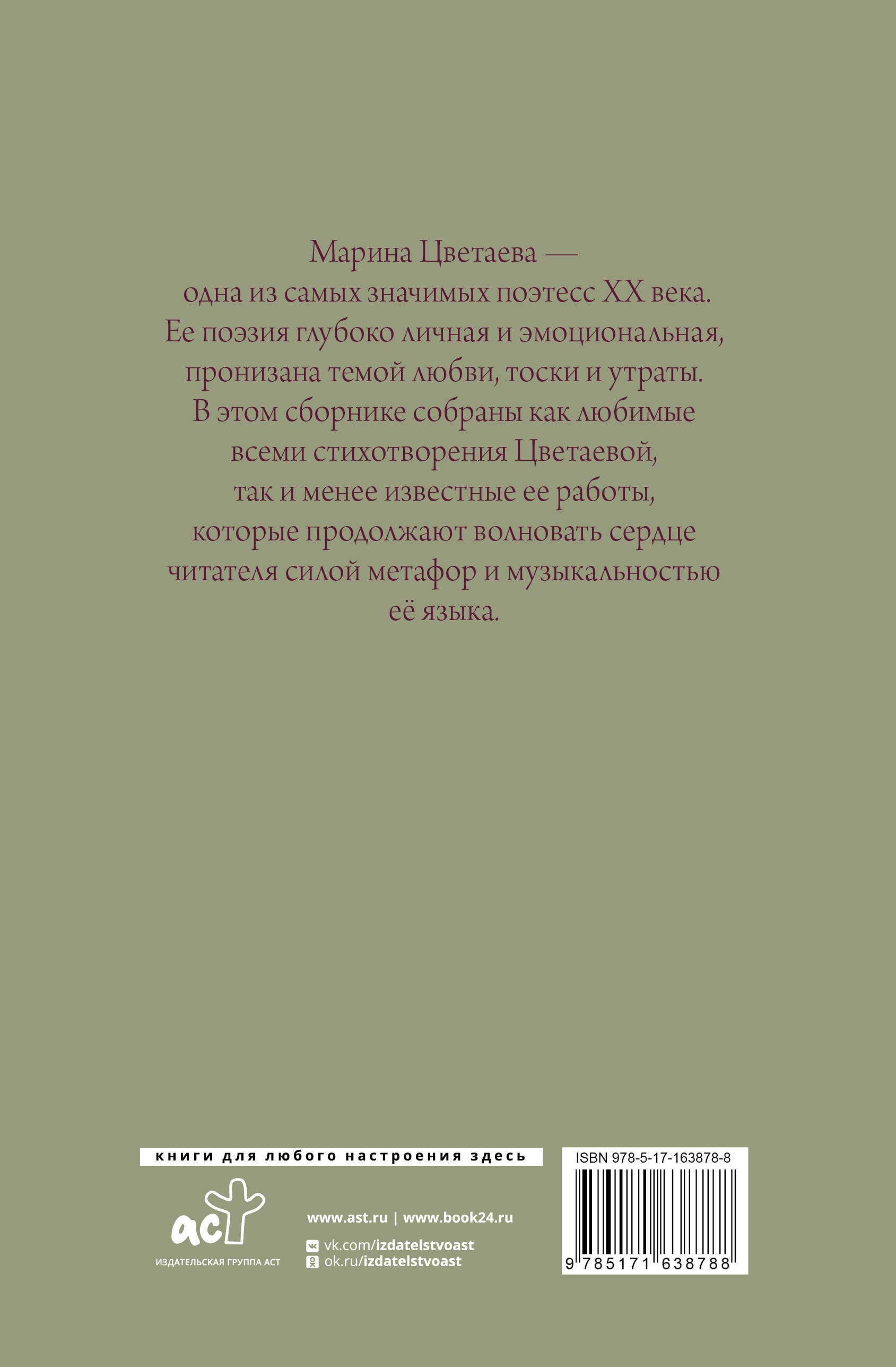 Марина Цветаева - одна из самых значимых поэтесс XX века. Ее поэзия глубоко личная и эмоциональная, пронизана темой любви, тоски и утраты. В этом сборнике собраны как и любимые всеми стихотворения Цветаевой, так и менее известные ее работы, которые продолжают волновать сердце читателя силой метафор и музыкальностью её языка.| Издательство | Издательство "АСТ" |
