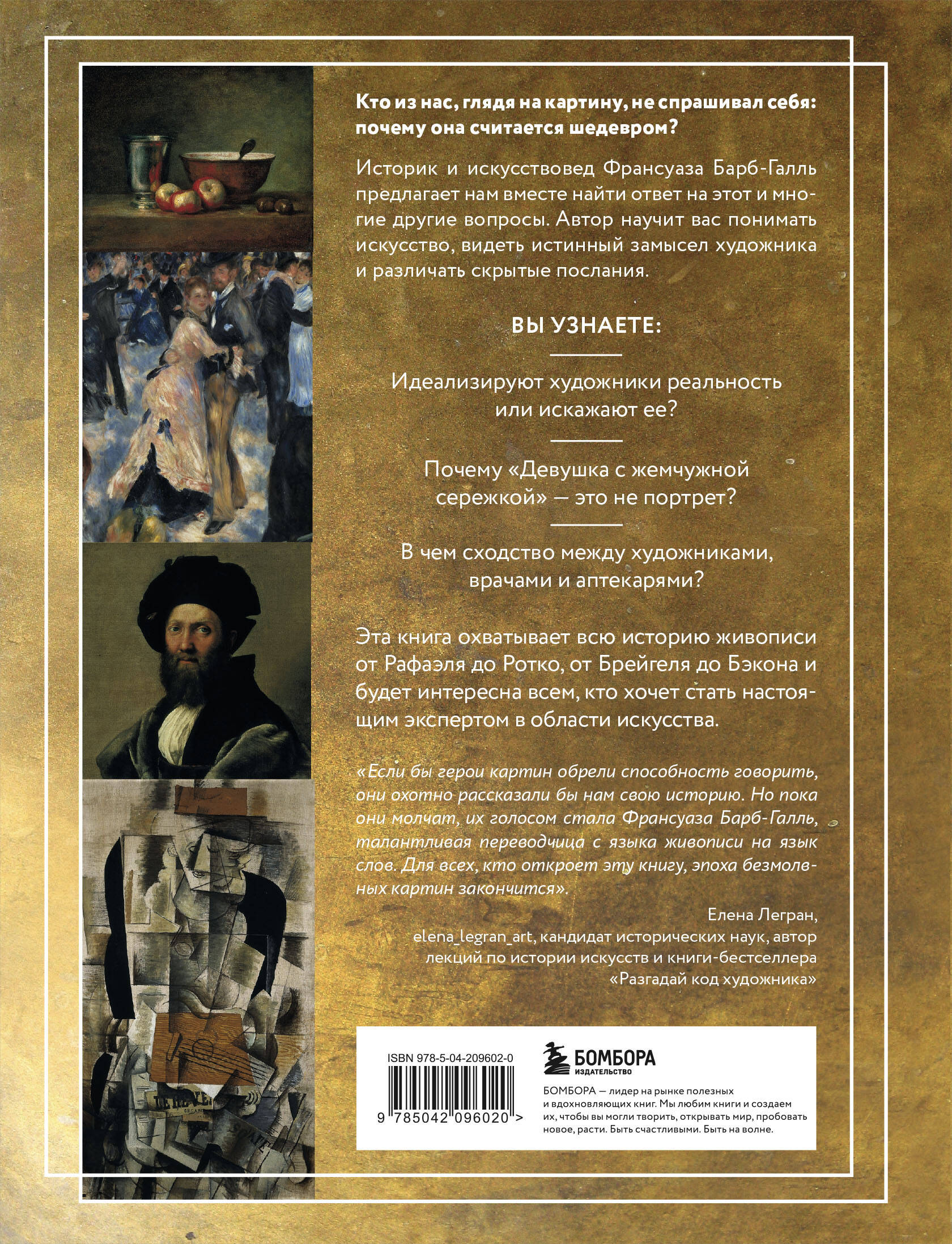 Переиздание бестселлера Франсуазы Барб-Галль, искусствоведа, преподавателя Школы Лувра. В нем автор предлагает расшифровать то, что хотел сказать художник, и научиться понимать живопись. Для этого нужно внимательно изучить картину, довериться своим глазам и своим ощущениям. В этой книге подробно разбираются шедевры мировой живописи, среди которых «Весна» Боттичелли, «Мулен де ла Галет» Ренуара, «Постоянство памяти» Дали, «Крик» Мунка, «Мадонна с младенцем и святой Анной» Да Винчи. Репродукции, отпечатанные на качественной мелованной бумаге, позволяют не упустить из виду ни одной важной детали. Вы узнаете: что символизируют серьги на картине Вермеера «Девушка с жемчужной сережкой»; каких богов и богинь изобразил Боттичелли на полотне «Весна»; что за существо спит, укрывшись часами, на картине Дали «Постоянство памяти». Разберетесь, как художникам удается изобразить то, что невозможно описать словами. И как разглядеть смыслы там, где есть только абстрактные мазки и цветовые пятна. В конце каждой главы вы найдете интересные дополнения: воспоминания художников, исторический контекст, особенности стиля и композиции. Эта книга даст вам ключ к пониманию живописи, который вы сможете использовать для исследования других предметов искусства уже самостоятельно. Следуйте за автором, смотрите внимательно и учитесь анализировать свои впечатления.| Издательство | ООО "Издательство "Эксмо" |