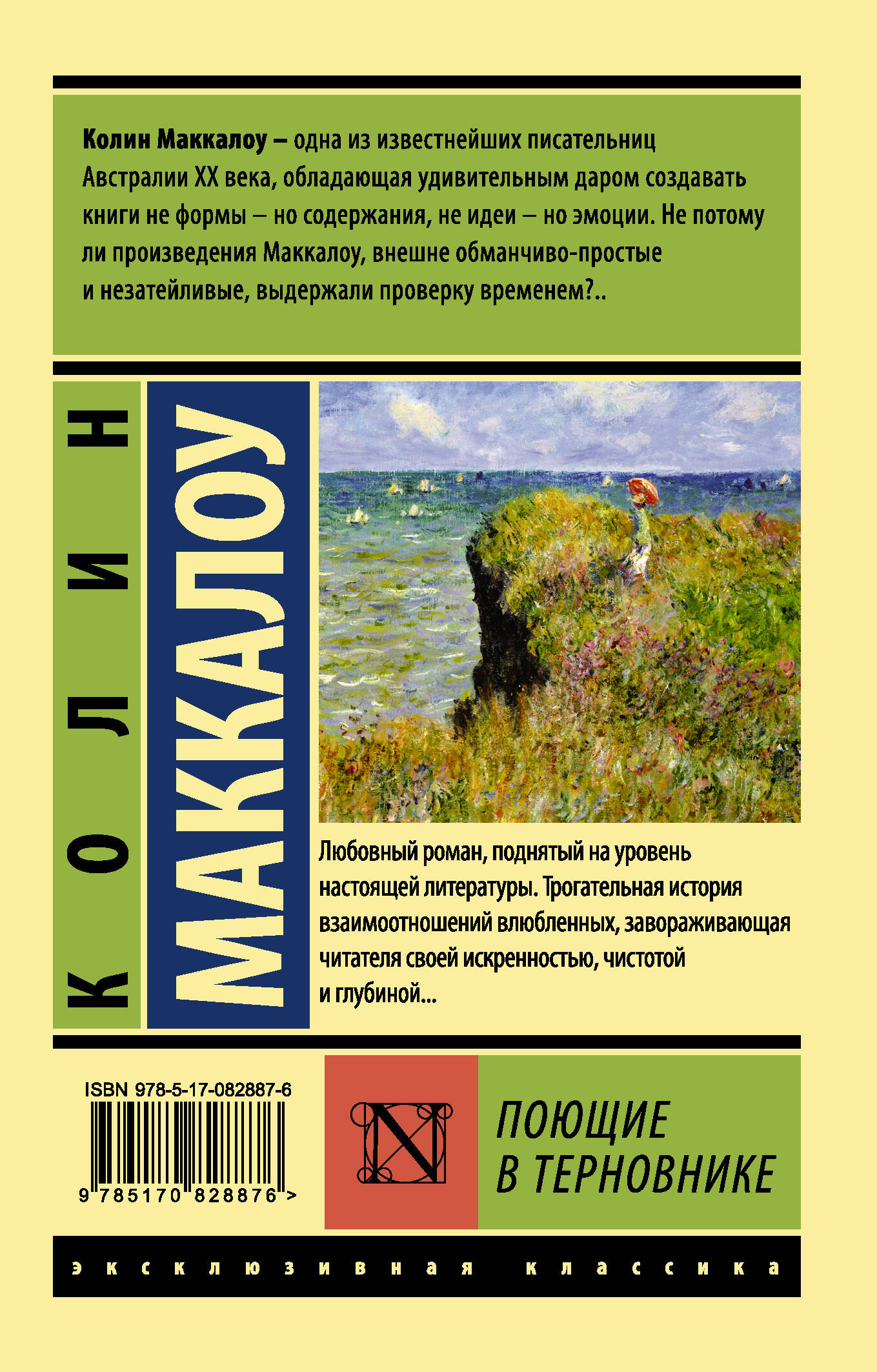 "Поющие в терновнике". Любовный роман, поднятый на уровень настоящей литературы. Трогательная история взаимоотношений влюбленных, завораживающая читателя своей искренностью, чистотой и глубиной...| Издательство | ИЗДАТЕЛЬСТВО "АСТ" |