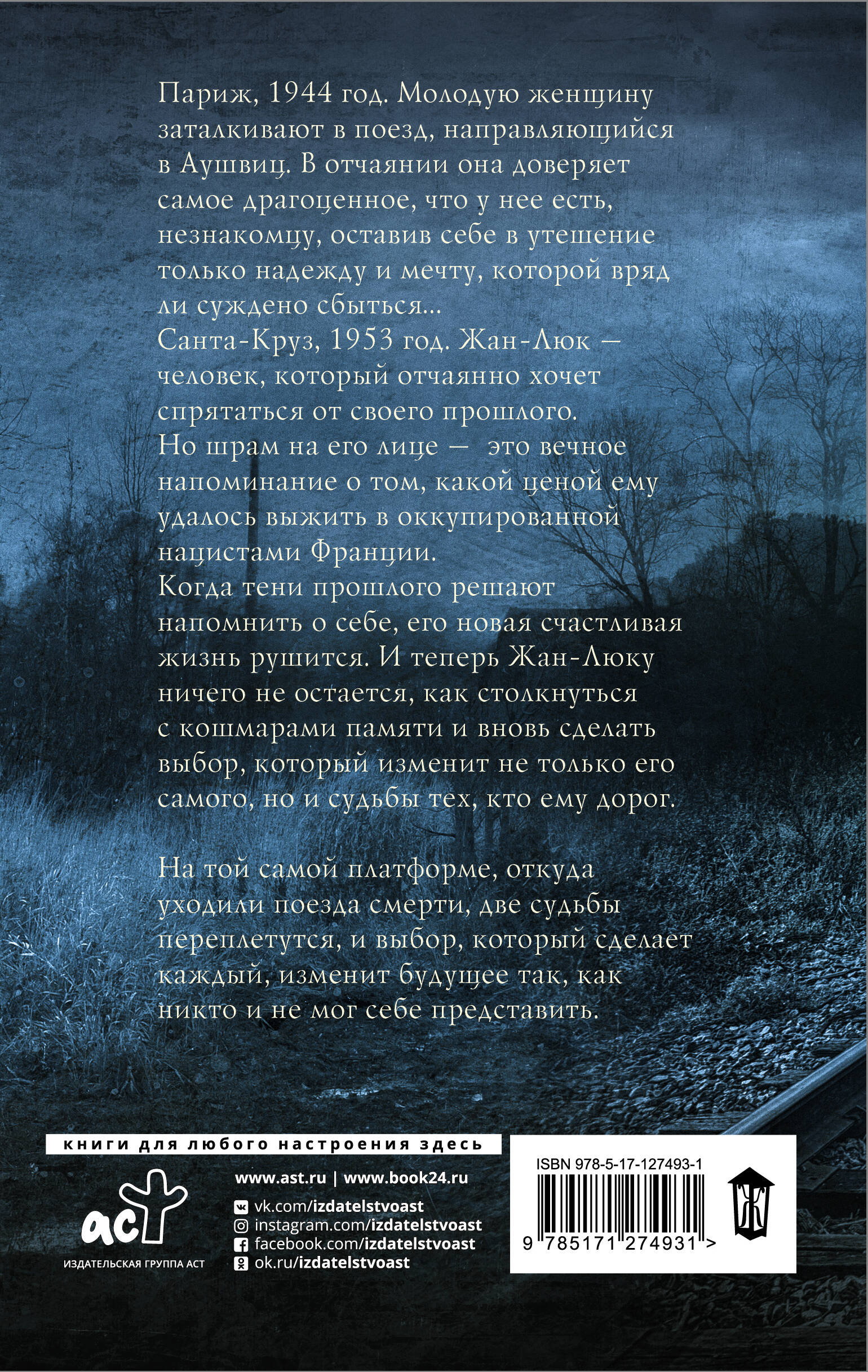 • Многообещающий дебют Рут Дрюар о свободе, выборе и материнской любви. • Права на публикацию романа были проданы в 11 стран еще до официального выхода книги. • Мощный, пронзительный дебют от блистательного автора. 1944 год. Оккупированная Франция. Сара - еврейка, и она вот-вот окажется в поезде, следующем в Аушвиц. Она знает, что это билет в один конец, но готова сделать все, чтобы ее новорожденный сын не разделил уготованную ей нацистами участь. Никому нельзя верить, и опасность кроется повсюду, но на миг Сара встречается глазами с Жан-Люком, юным рабочим на железной дороге, - и в этот момент рождается надежда. Два идеальных незнакомца решатся доверить друг другу самое сокровенное, и выбор, сделанный в тот далекий день на платформе в Бобиньи, навсегда изменит их жизнь.| Издательство | ИЗДАТЕЛЬСТВО "АСТ" |