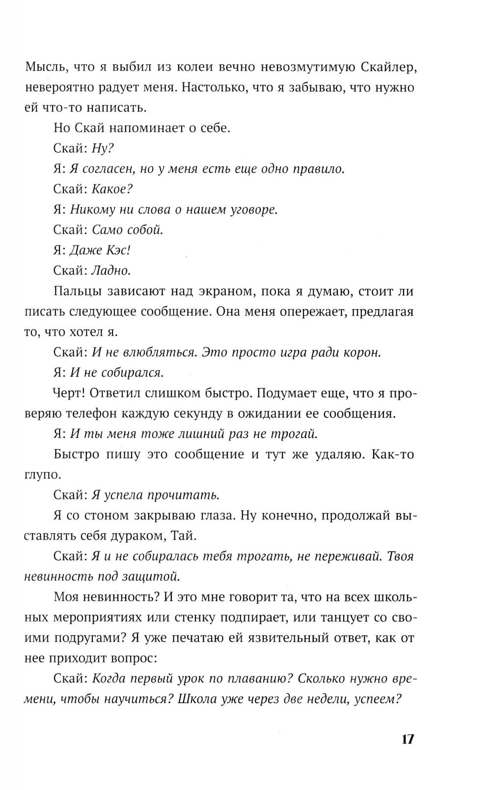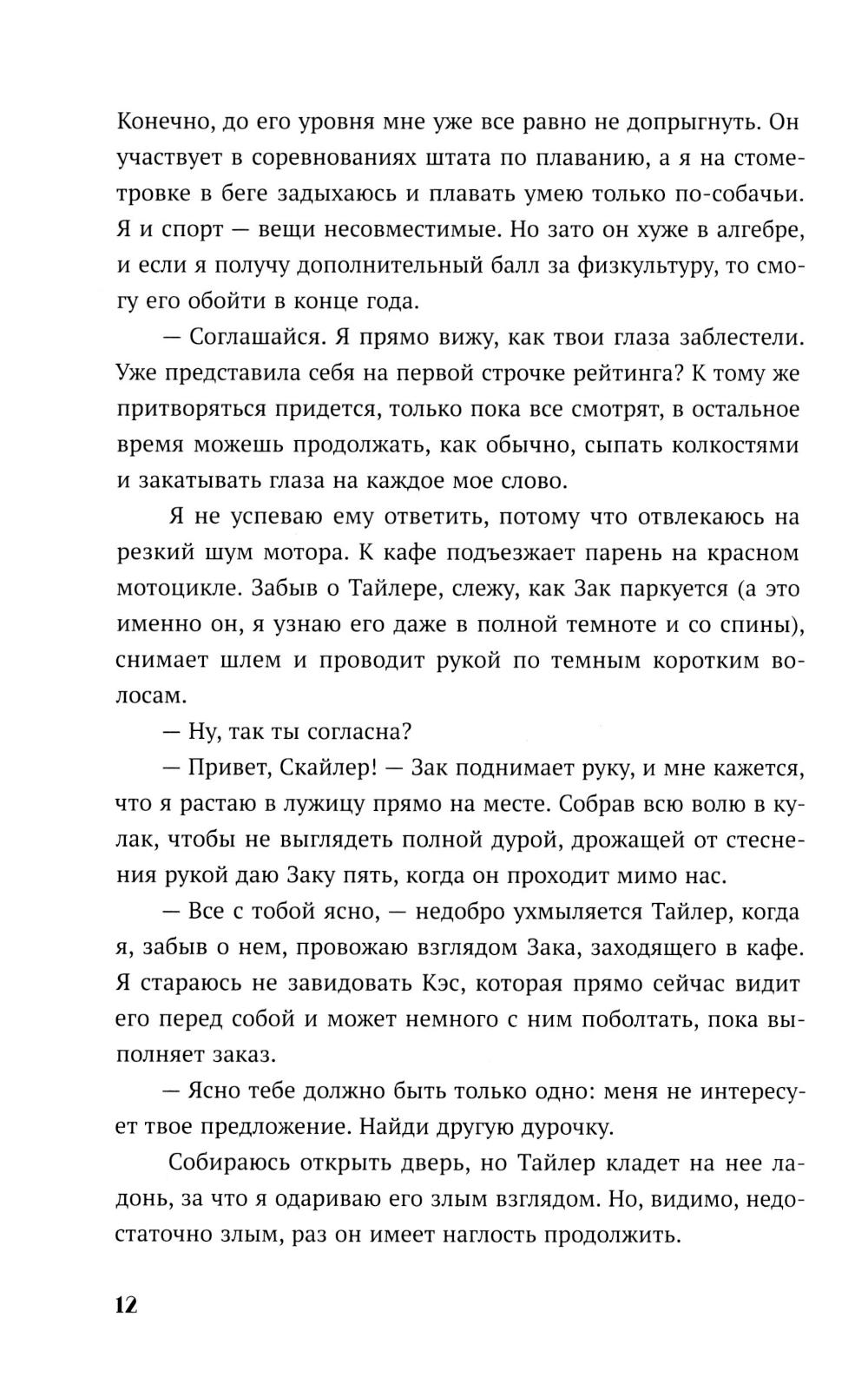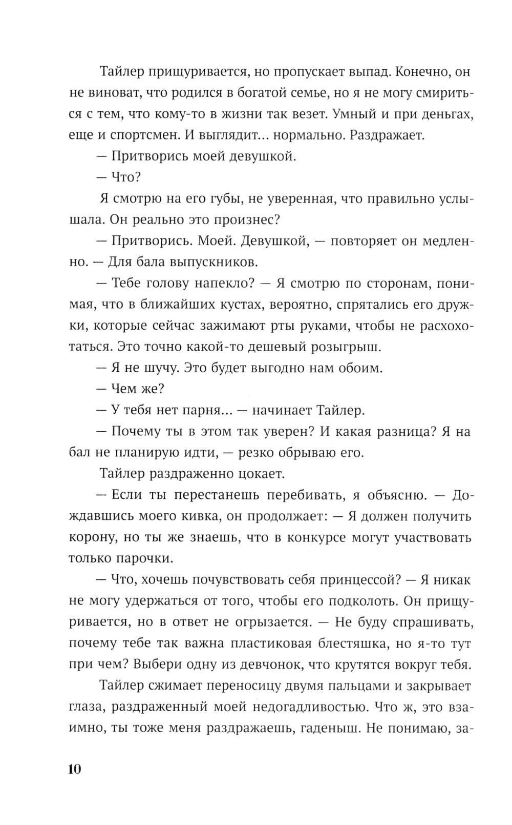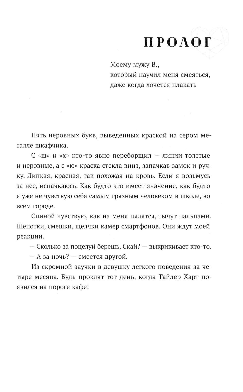 Когда Тайлер предлагает Скайлер притвориться его девушкой ради выпускного бала, она соглашается- ведь игра выгодна обоим. Но то, что началось как сделка, вскоре превращается вочто-то более серьезное. Скайлер Фокс - отличница, которую в один миг превратили в героиню школьных сплетен. Тайлер Харт - богатый, дерзкий, уверенный в себе парень, привыкший быть в центре внимания. Она мечтает доказать, что не обязана быть идеальной. Он - что за маской «плохого парня» скрывается нечто большее| Издательство | Мангата |