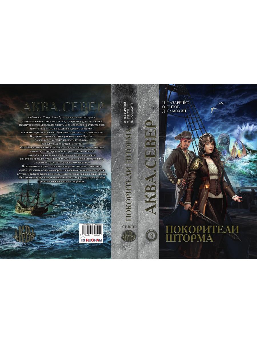 События на Севере Аквы бурлят хлеще летних штормов, и даже сильнейшие мира того не могут удержать в руках всех нитей. Вездесущий клан Бриз, желая лишить Бора монополии на судостроение, ведёт тайные опыты по созданию парового двигателя - но важные чертежи похищают буквально из-под носа верховного тана. Внутреннее противостояние разрывает клан Муссон - почему всем так важно завладеть артефактом, принадлежащим дочери магистра? Случайно ли воздушный шар уносит её в чужие воды, где островитяне находят в океане древних монстров из дерева и стали? Даже безобидные ткачи клана Сирокко отнюдь не просты: они втайне проводят чудовищные опыты над гигантскими растениями, делая из них разумных управляемых хищников. В столичных тавернах заключают контракты охотники за головами, корабли захватывают прямо в портах, на окраинах бесчинствуют пираты, а у тварей Барьера теперь появилась почти разумная родня в водах Сирокко. На Акву надвигается шторм, и одни лишь духи моря знают, как он может отразиться на жизни каждого морехода...| Издательство | Т8 RUGRAM |