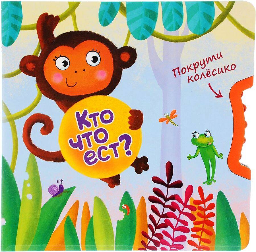 Что у белки на обед? Покрутите колесико и узнайте ответ! Яркая книжка-игрушка "Кто что ест?" серии "Покрути колесико" познакомит маленького читателя с очаровательными животными, расскажет об их любимых лакомствах. Прочитайте малышу веселые и добрые стихи, а затем покрутите колесико так, чтобы каждое животное получило свое любимое блюдо: обезьянка - бананы, попугайчик - зернышки и так далее. Красочную книжку из легкого, но плотного картона удобно держать и листать маленькими ручками, она подарит много радости Вашему малышу и обязательно станет любимой.