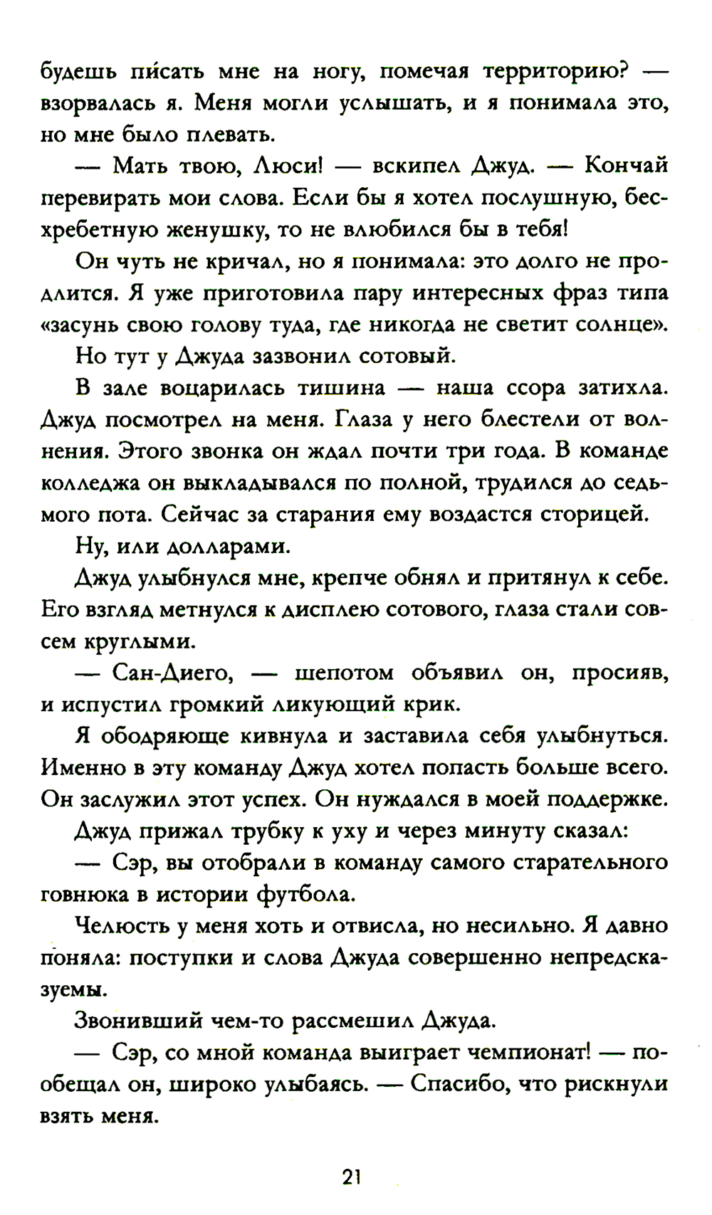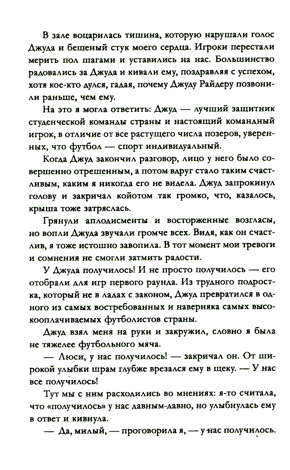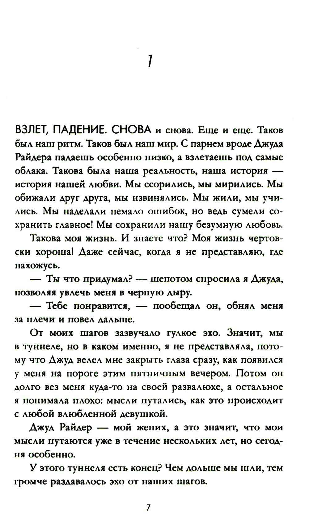 Третья книга об истории любви Джудо Райдера и Люси Ларсон. Взлет, падение. Снова и снова. Еще и еще. Таков наш ритм. Таков наш мир. С парнем вроде Джуда Райдера падаешь резко, а взлетаешь высоко. Люси Ларсон и Джуд Райдер обручены, но он все равно ревнует ее к каждому встречному и не понимает: не важно, сколько парней захотят ее поцеловать, она хочет целоваться только с ним. Джуд поверит своей возлюбленной, или их любовь обречена. Каждый раз, ловя улыбку своего парня, Люси чувствует себя той девочкой на пляже, которая страдала и не верила, что однажды он будет принадлежать ей. Теперь она не хочет его терять...| Издательство | Клевер |