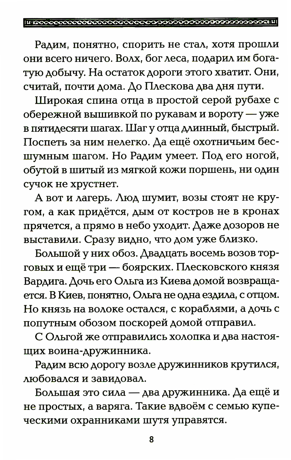 Первая книга новой увлекательной исторической серии. Ольгу, дочь правителя Пскова, на пути домой из Киева похищают неведомые разбойники. Уцелевшему при нападении сыну охотника Радиму удаётся выследить злодеев. Подросток выясняет, что Ольгу похитили вовсе не простые разбойники... и сам попадает к ним в руки. Теперь княжне и сыну охотника предстоит спасаться вместе. Захватывающие приключения во времена Древней Руси от признанных мастеров историко-приключенческой и детской литературы.| Издательство | Феникс |