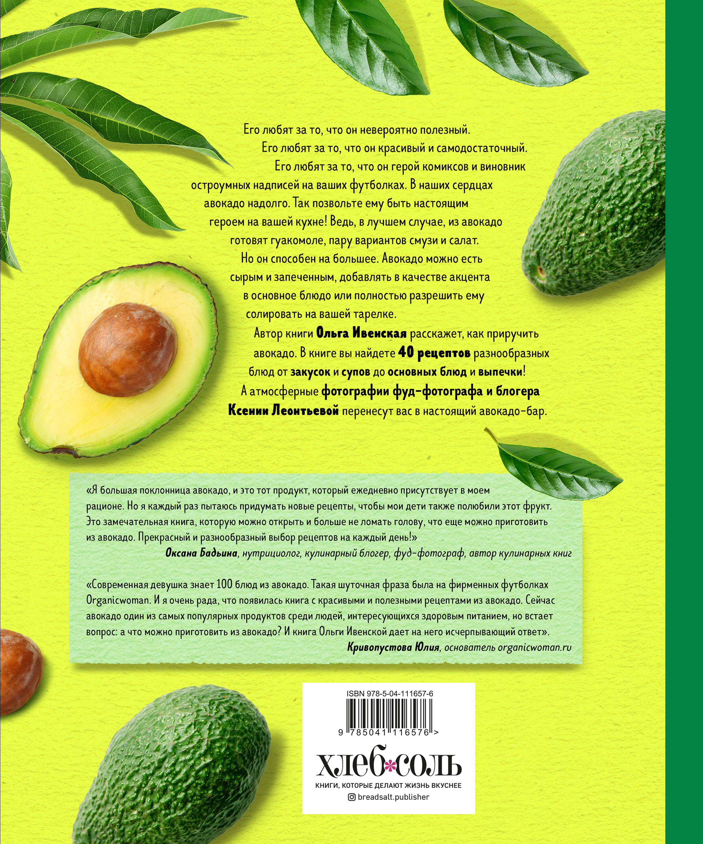 Его любят за то, что он невероятно полезный. Его любят за то, что он красивый и самодостаточный. Его любят за то, что он герой комиксов и виновник остроумных надписей на ваших футболках. В наших ПП и не очень сердцах авокадо надолго. Так позвольте ему быть настоящим героем на вашей кухне! Ведь, в лучшем случае, из авокадо готовят гуакомоле, пару вариантов смузи и салат. Но он способен на большее. Авокадо можно есть сырым и запеченным, добавлять в качестве акцента в основное блюдо или полностью разрешить ему солировать на вашей тарелке. Автор книги Ольга Ивенская расскажет, как приручить авокадо. В книге вы найдете 40 рецептов разнообразных блюд от закусок и супов до основных блюд и выпечки! А атмосферные фотографии фуд-фотографа и блогера Ксении Леонтьевой перенесут вас в настоящий авокадо-бар.| Издательство | ООО "Издательство "Эксмо" |