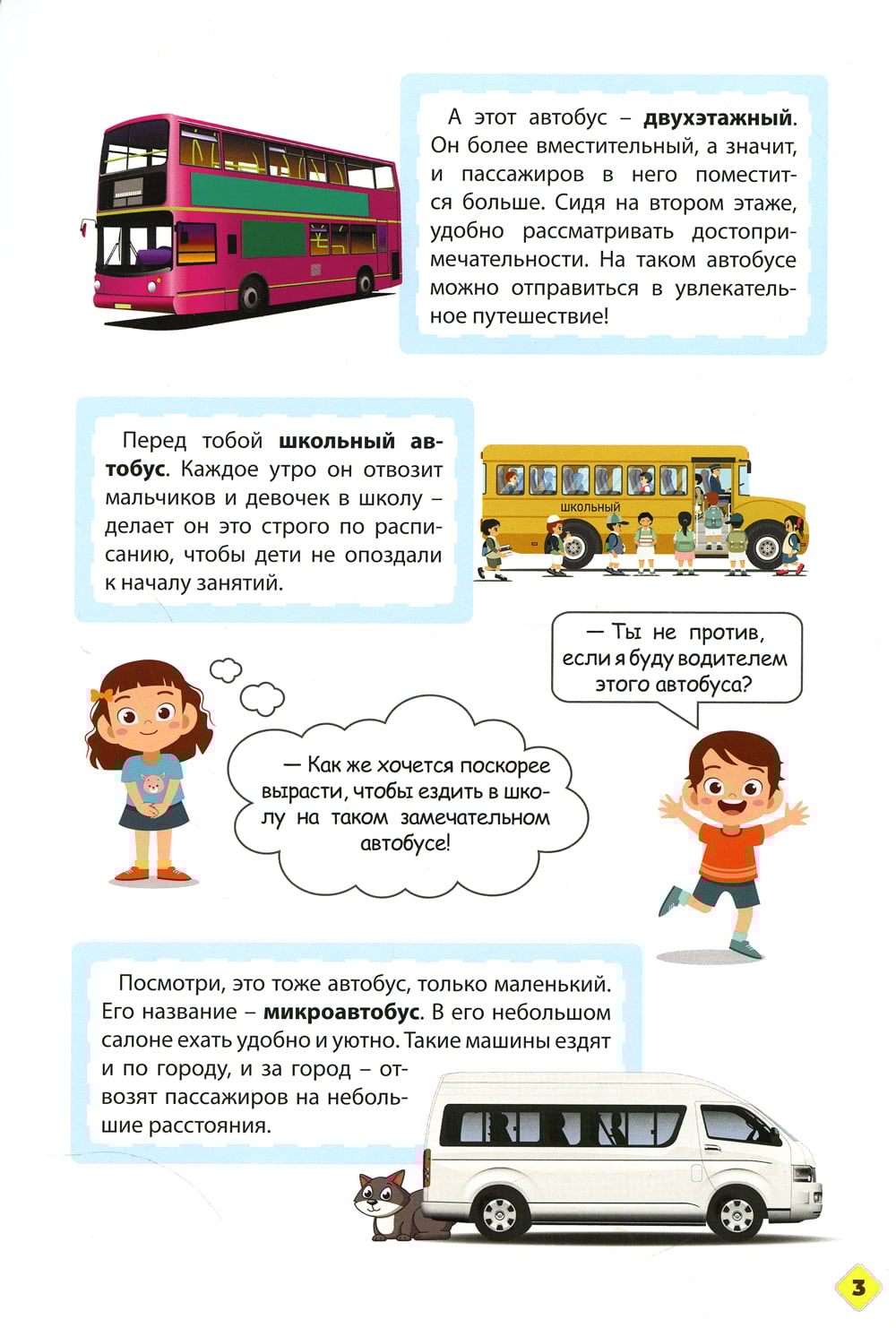 Давай отправимся с тобой в захватывающее путешествие по миру полезных машин! На страницах красочной книги вместе с нашими героями ты «прокатишься» в городском транспорте, начиная от автобуса и заканчивая метро, познакомишься с разными автомобилями, которые трудятся в городах и посёлках и помогают людям, узнаешь, для чего нужны строительные машины (например, экскаватор и бульдозер). А в конце книги тебя ждёт увлекательная игра-викторина!..