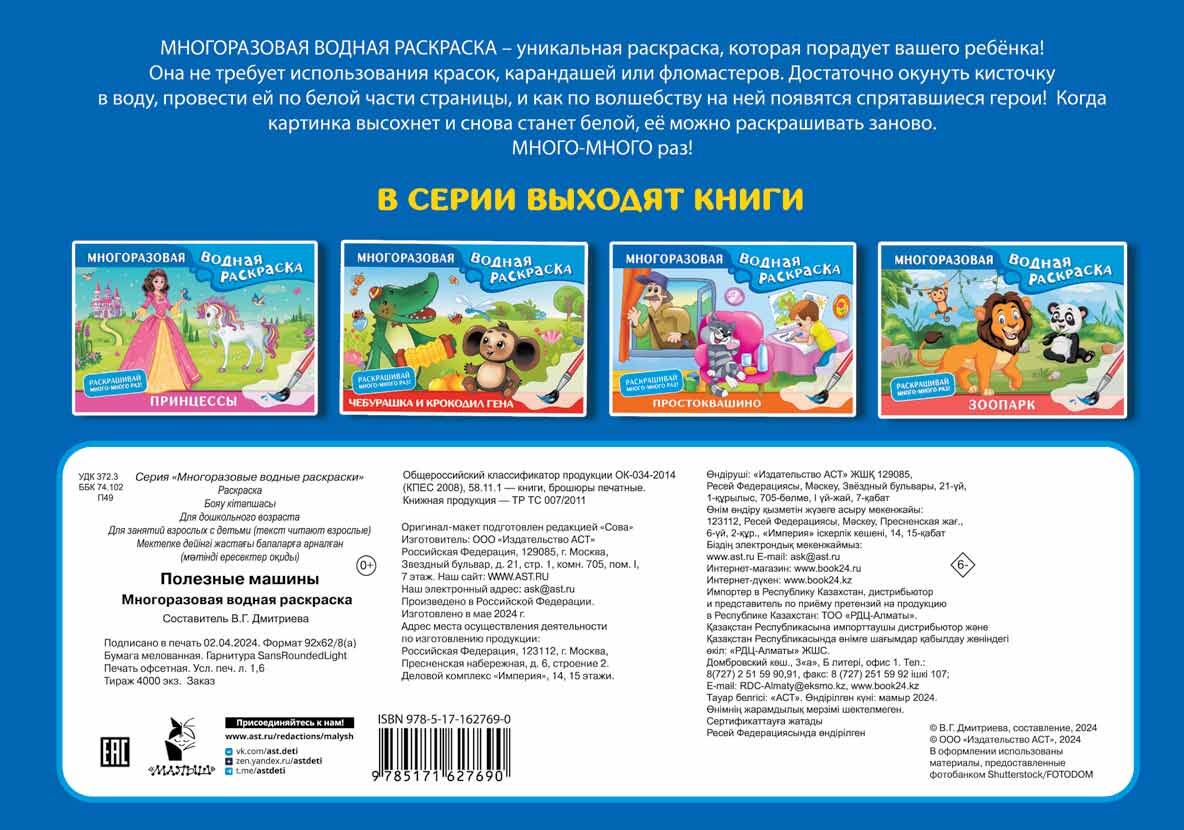 Аннотация: Полезные машины. Многоразовая водная раскраска