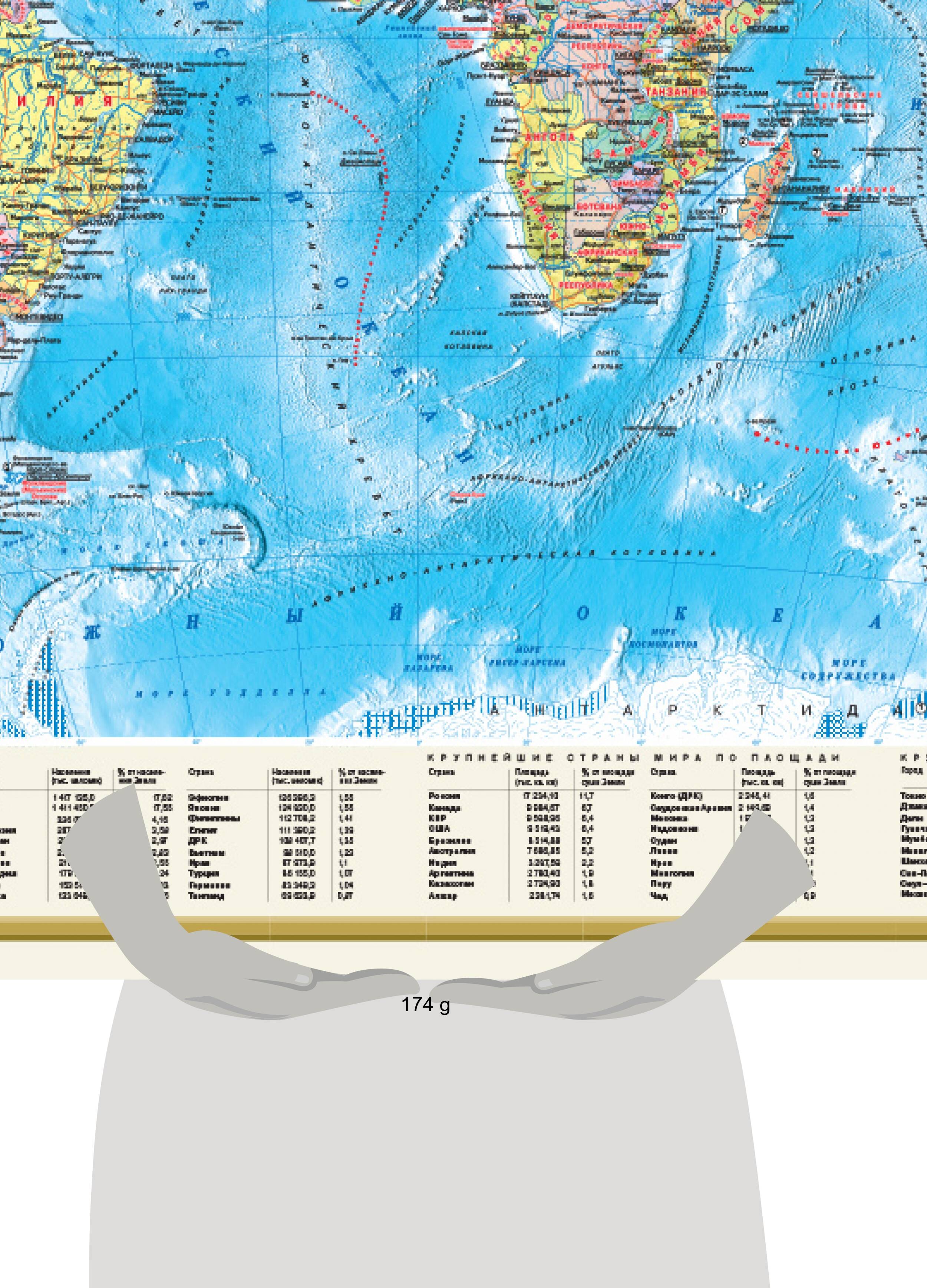 На Политической карте масштаба 1:32 000 000 (в 1 см 320 км) представлены все независимые государства мира (Россия дана в новых границах), а также зависимые территории и территории с особым статусом. Хорошо различимыми пунсонами показаны населённые пункты с градациями "более 1 млн жителей", "от 100 тыс. до 1 млн жителей" и "менее 100 тыс. жителей". Отражены основные железнодорожные и автомобильные пути сообщения. Морские пути даны с указанием километража. Главную карту дополняют врезки в более крупных масштабах на Европу и Карибский регион, а также карта "Плотность населения". В табличном виде приведены данные о крупнейших странах мира по населению, площади, а также об основных городских агломерациях мира. Размеры карты 1170х790 мм, антибликовое покрытие. .| Издательство | ИЗДАТЕЛЬСТВО "АСТ" |