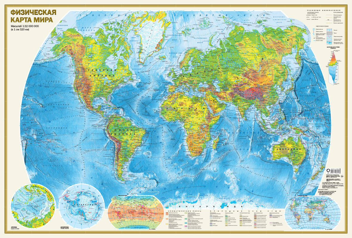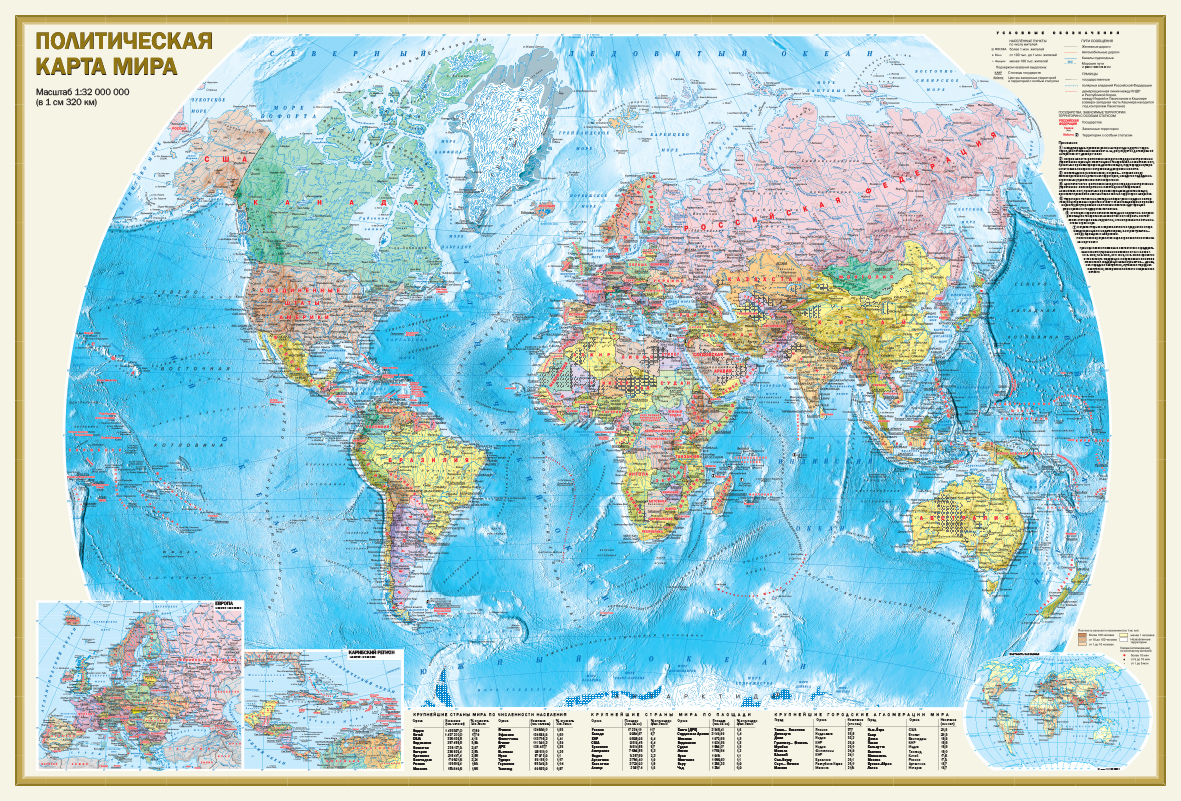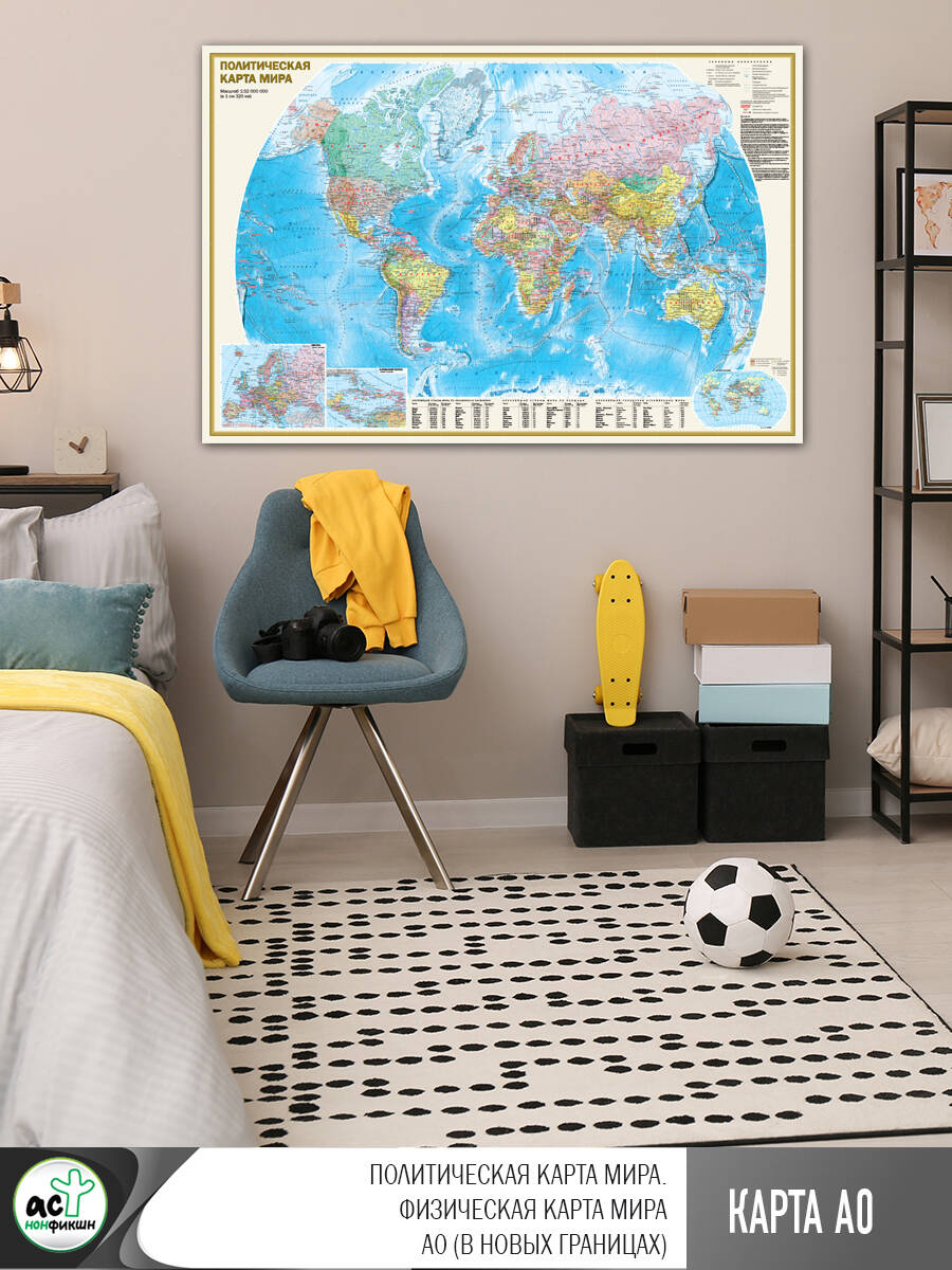 Политическая карта мира. Физическая карта мира А0 (в новых границах)