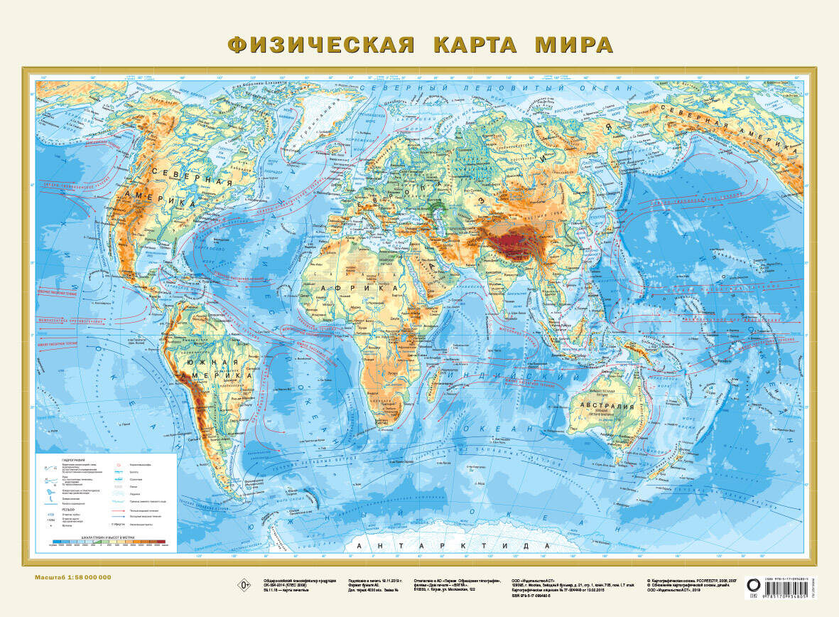 В этом картографическом издании, упакованном в пластик, представлены две географические карты. На одной стороне - политическая карта мира: здесь изображены все независимые государства мира с их столицами, а также зависимые территории и территории с особым статусом. На другой стороне - физическая карта мира, демонстрирующая распределение горных и равнинных территории на континентах Земли и чередование подводных хребтов, котловин и глубоководных желобов на дне Мирового океана. Отмечены крупнейшие вершины всех основных горных систем суши и максимальные глубины океана.| Издательство | Издательство "АСТ" |