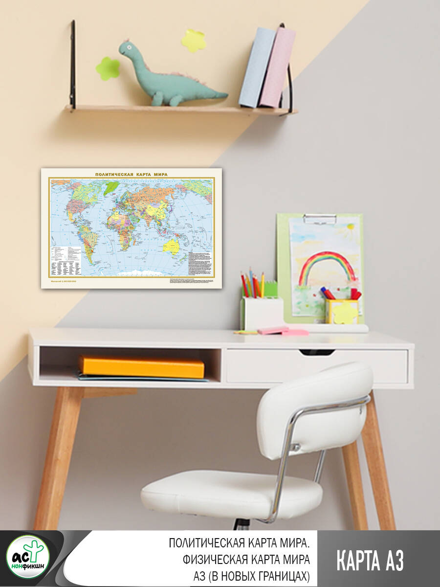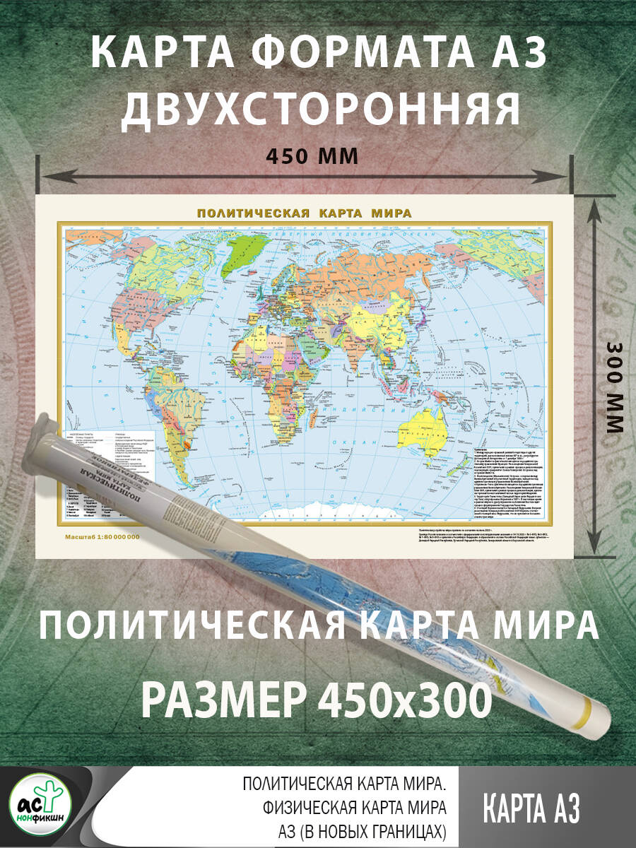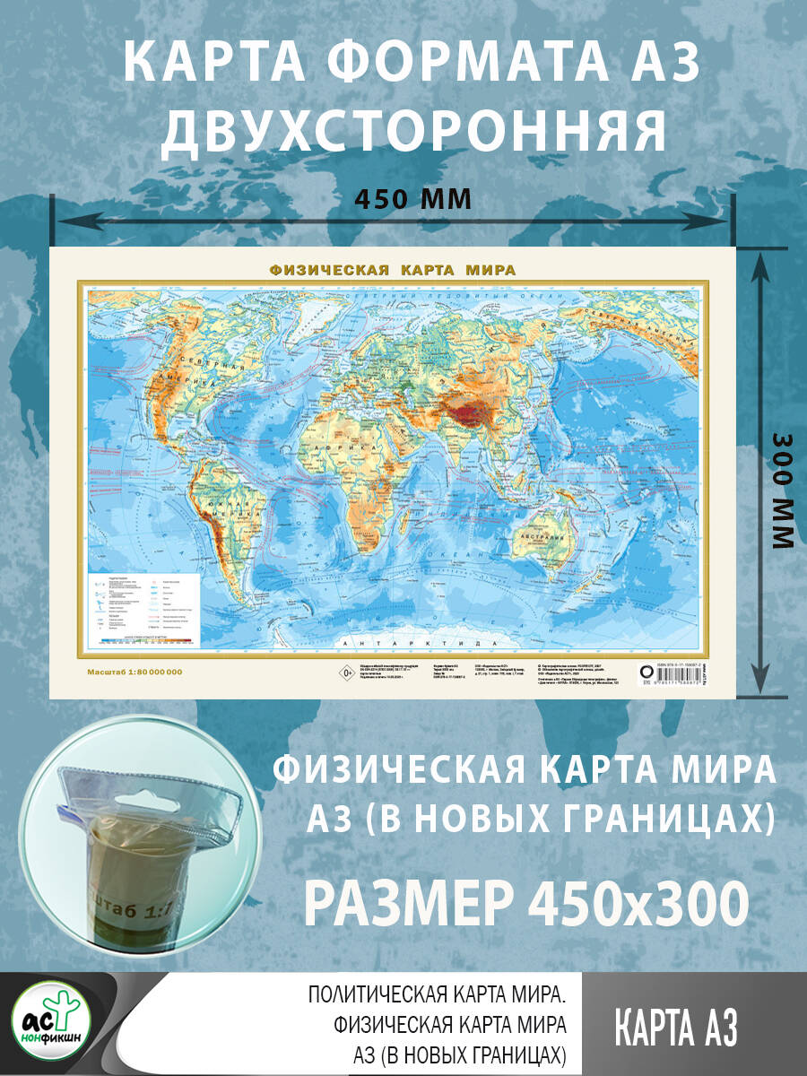 Политическая карта мира. Физическая карта мира А3 (в новых границах)