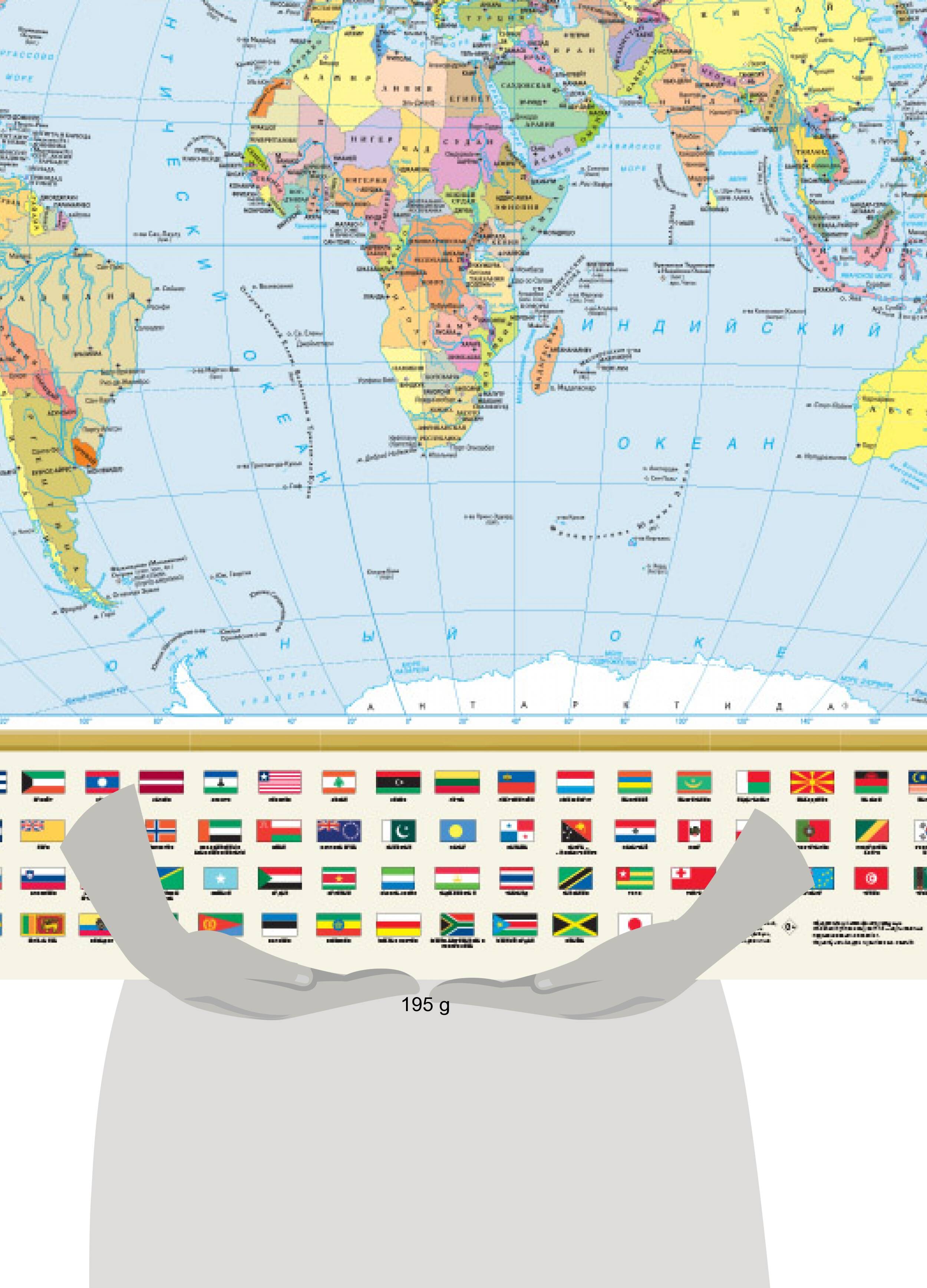 На хорошо читаемой настенной политической карте крупного формата в контрастной цветовой гамме представлены все независимые государства мира с их столицами, а также зависимые территории и территории с особым статусом. Населённые пункты на карте даны в трёх градациях численности: более 1 млн жителей, от 100 тыс. до 1 млн, менее 100 тыс. жителей. Карта обрамлена официальными флагами государств мира, расположенными в алфавитном порядке, что облегчает их поиск. Карта, упакованная в тубус из пластика, предназначена для всех любителей географии, интересующихся современным политическим устройством мира.| Издательство | АСТ |