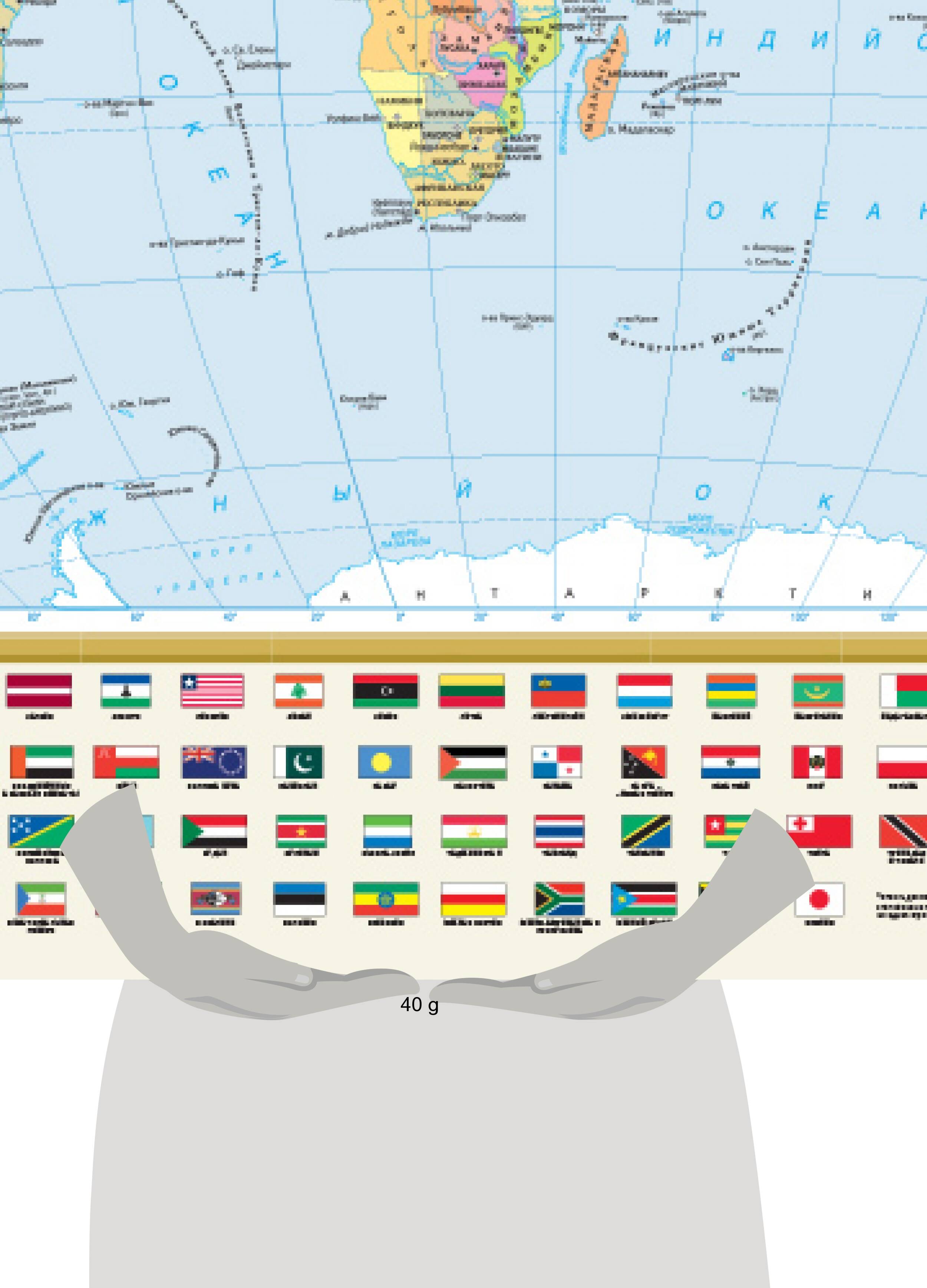Эта настенная Политическая карта мира, покрытая с лицевой стороны антибликовым покрытием, имеет размеры 1170х790 мм. На карте представлены все 196 независимых государств мира с их столицами, а также владения и территории с особым статусом. Россия представлена в новых границах: с Донецкой и Луганской народными республиками, Запорожской и Херсонской областями, Республикой Крым и Севастополем. Населённые пункты на карте даны в трёх градациях численности: более 1 млн жителей, от 100 тыс. до 1 млн, менее 100 тыс. жителей. Карта обрамлена официальными флагами государств мира, расположенными в алфавитном порядке, что облегчает их поиск. Рекомендовано для широкого круга пользователей.| Издательство | ИЗДАТЕЛЬСТВО "АСТ" |