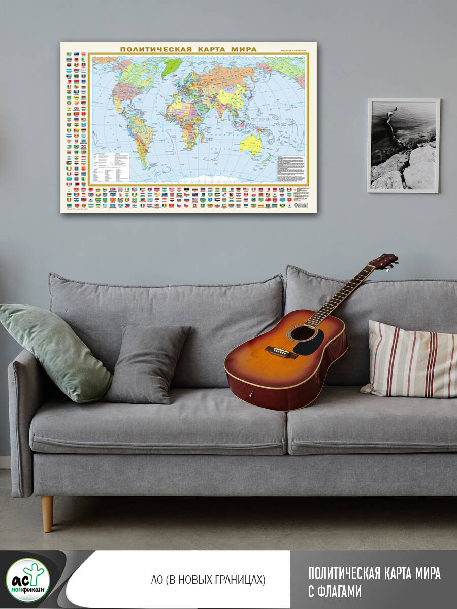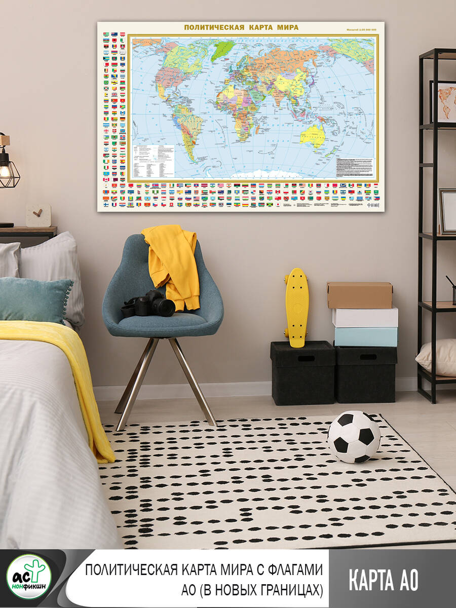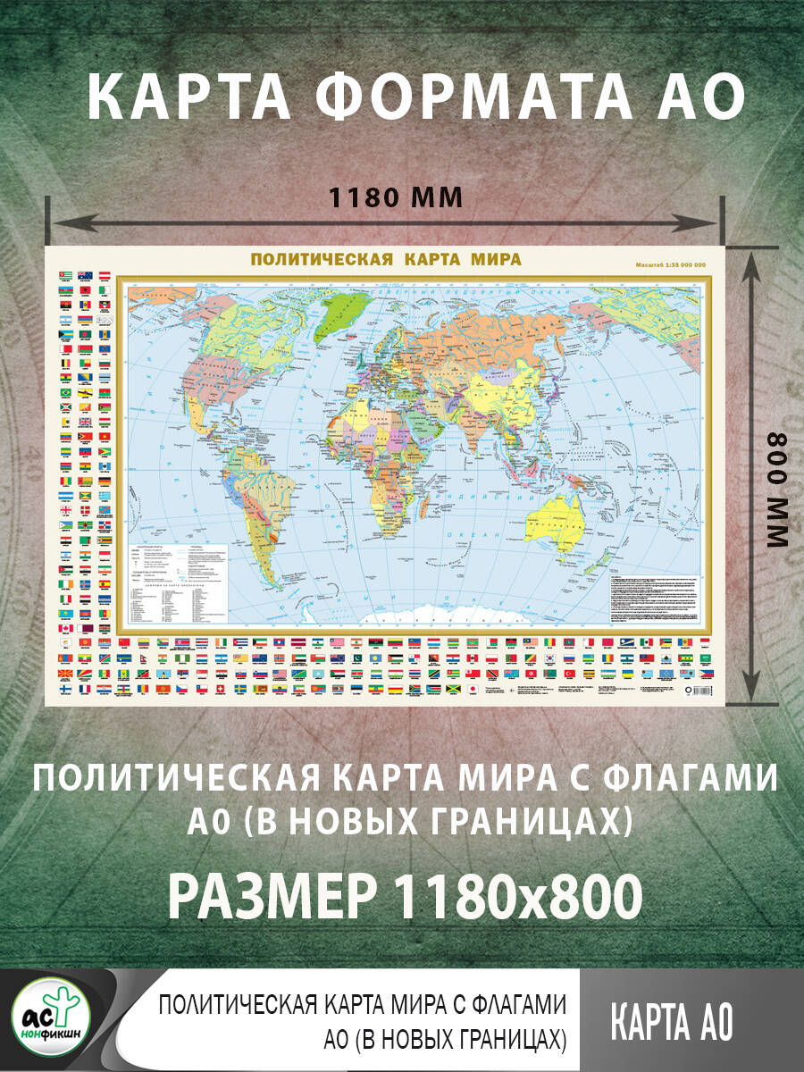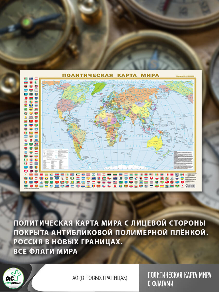 Аннотация: Политическая карта мира с флагами А0 (в новых границах)