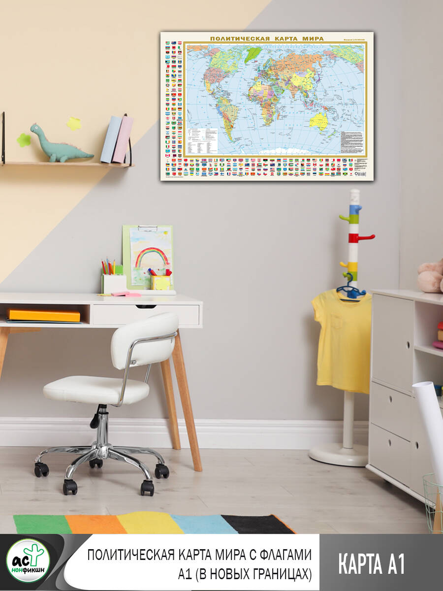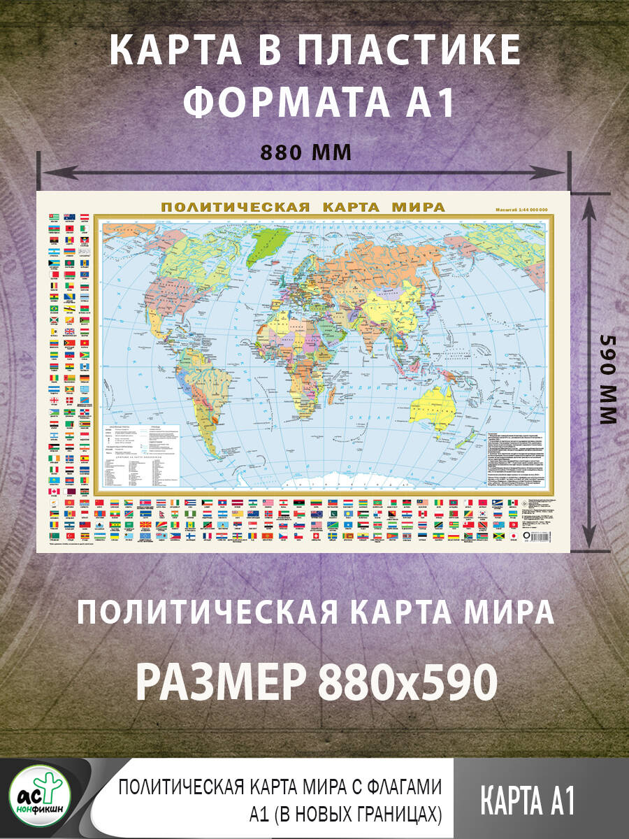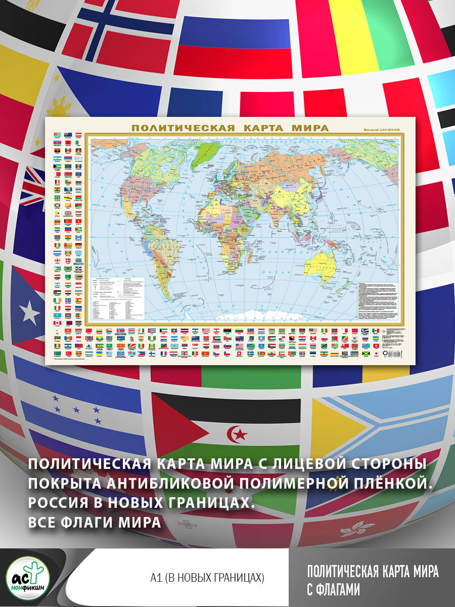 Аннотация: Политическая карта мира с флагами А1 (в новых границах)