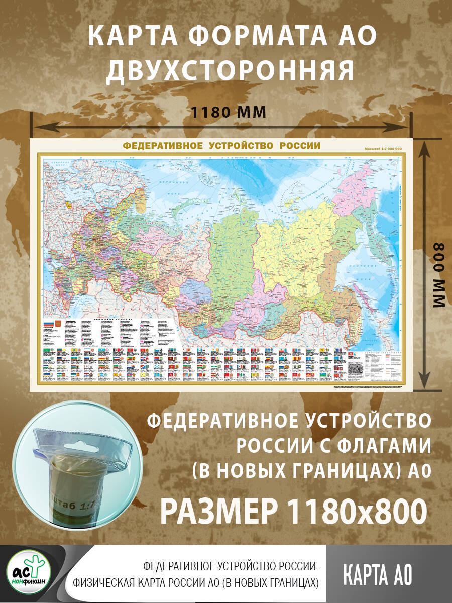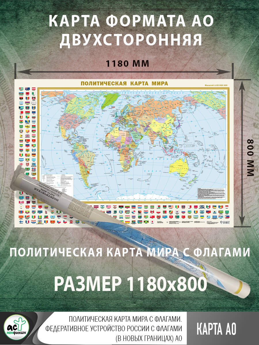 Аннотация: Политическая карта мира с флагами. Федеративное устройство России с флагами (в новых границах) А0