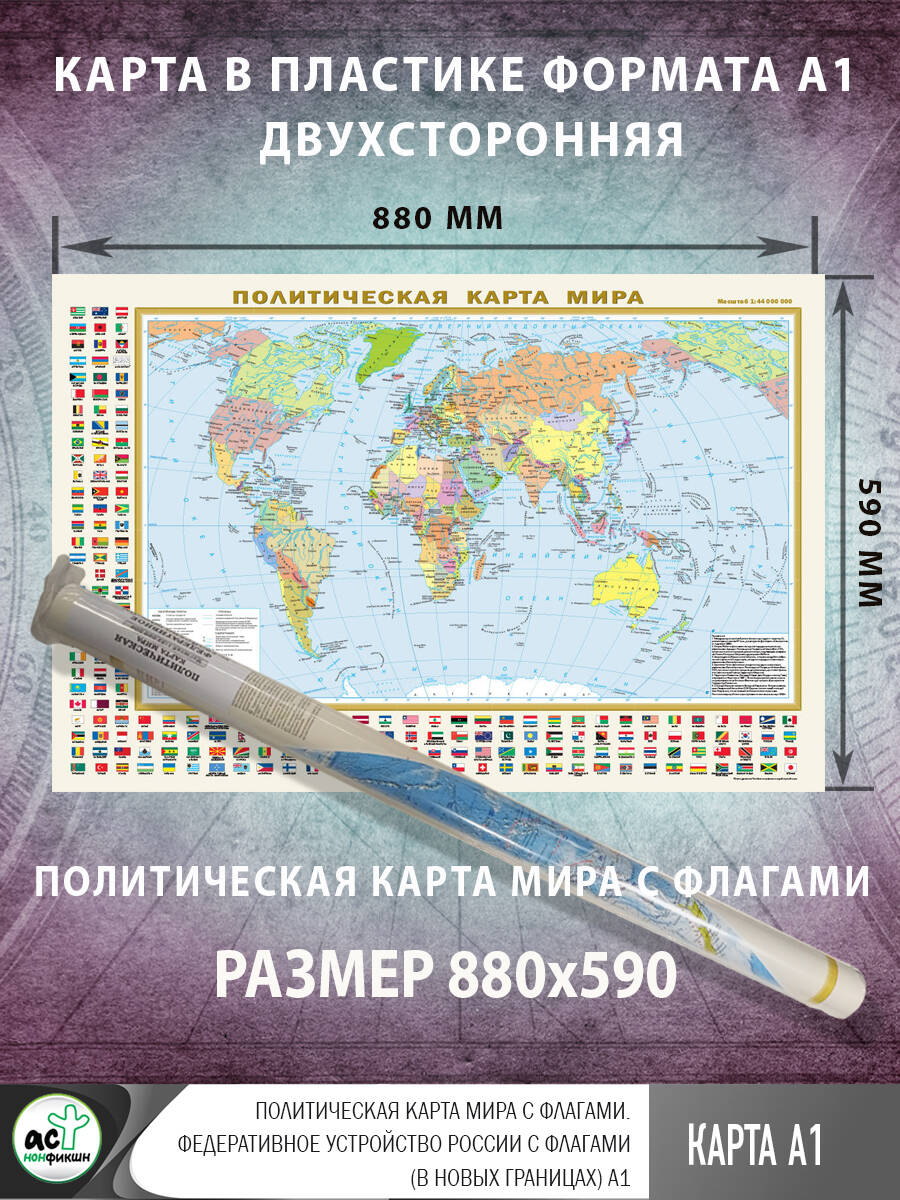 Аннотация: Политическая карта мира с флагами. Федеративное устройство России с флагами (в новых границах) А1