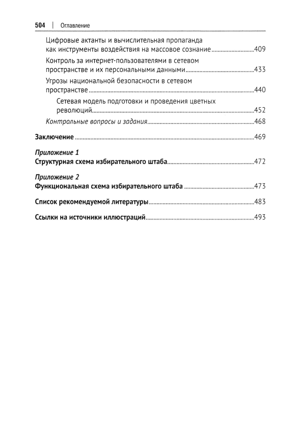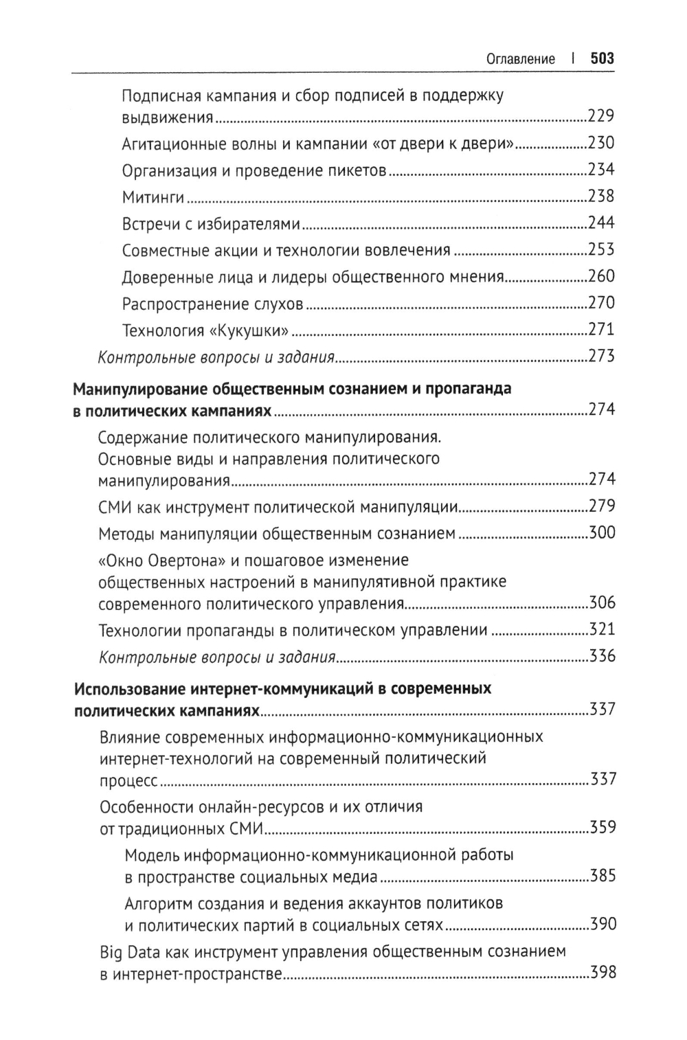 В учебнике дано комплексное представление о содержании и особенностях управления современными политическими кампаниями. Подробно изложены ключевые функции политического управления, рассмотрены структура, содержание и специфика политических кампаний. Исследованы содержание основных направлений политической кампании и опыт их реализации в современной практике. Приведены структура и содержание стратегии политической кампании, рассмотрены особенности разработки коммуникационных и имиджевых концепций политической кампании. Особое место отведено вопросам организации эффективной массовой политической коммуникации, созданию и продвижению современных политических брендов. Отдельное внимание уделено вопросам, связанным с применением технологий политической пропаганды и манипуляции в процессах воздействия на массовое сознание и политическое поведение. Подробно изучены особенности цифровых политических коммуникаций в интернет-пространстве, а также практика применения технологий Big Data, искусственного интеллекта и вычислительной пропаганды при проведении политических кампаний. Для студентов, аспирантов, преподавателей социально-гуманитарных дисциплин, специалистов в области политического управления и политических коммуникаций.| Издательство | Блок-Принт |