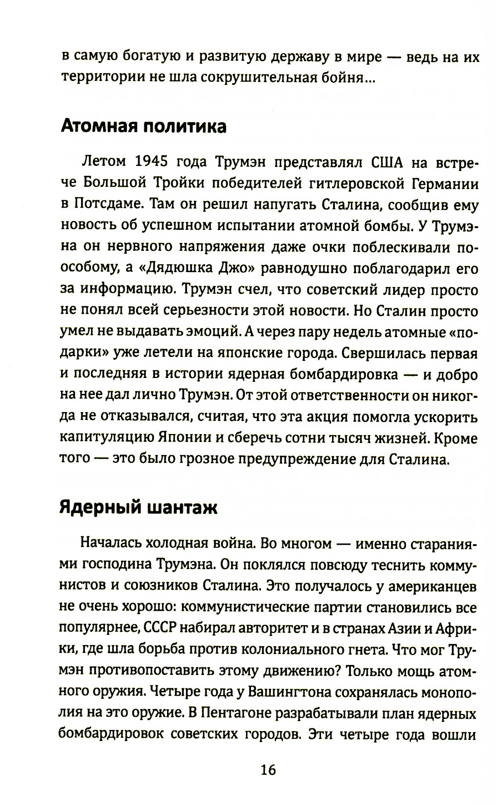 Эта книга посвящена самому напряженному противостоянию в мировой истории - Холодной войне, в которой Советский Союз действовал против Соединенных Штатов Америки, НАТО против Варшавского договора. Конфликты, переговоры, попытки сотрудничать, подписание исторических договоров - всё это были яркие вехи истории. В этой книге вы увидите очерки-портреты выдающихся политиков того времени - Трумэна, Брежнева, Мао Цзэдуна, Громыко, Эйзенхауэра, Никсона, Кастро, Андропова, Дэн Сяопина, Рейгана… Познакомитесь с вехами истории, с событиями, определившими историю человечества и предотвратившими большую войну… Сегодня для нас особенно важен опыт того великого противостояния и уроки выдающихся политиков ХХ века, которые "сражались" по обе стороны фронта Холодной войны. Книга предназначена для всех, кто интересуется историей и политикой.