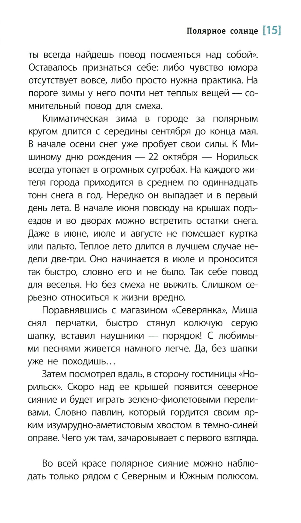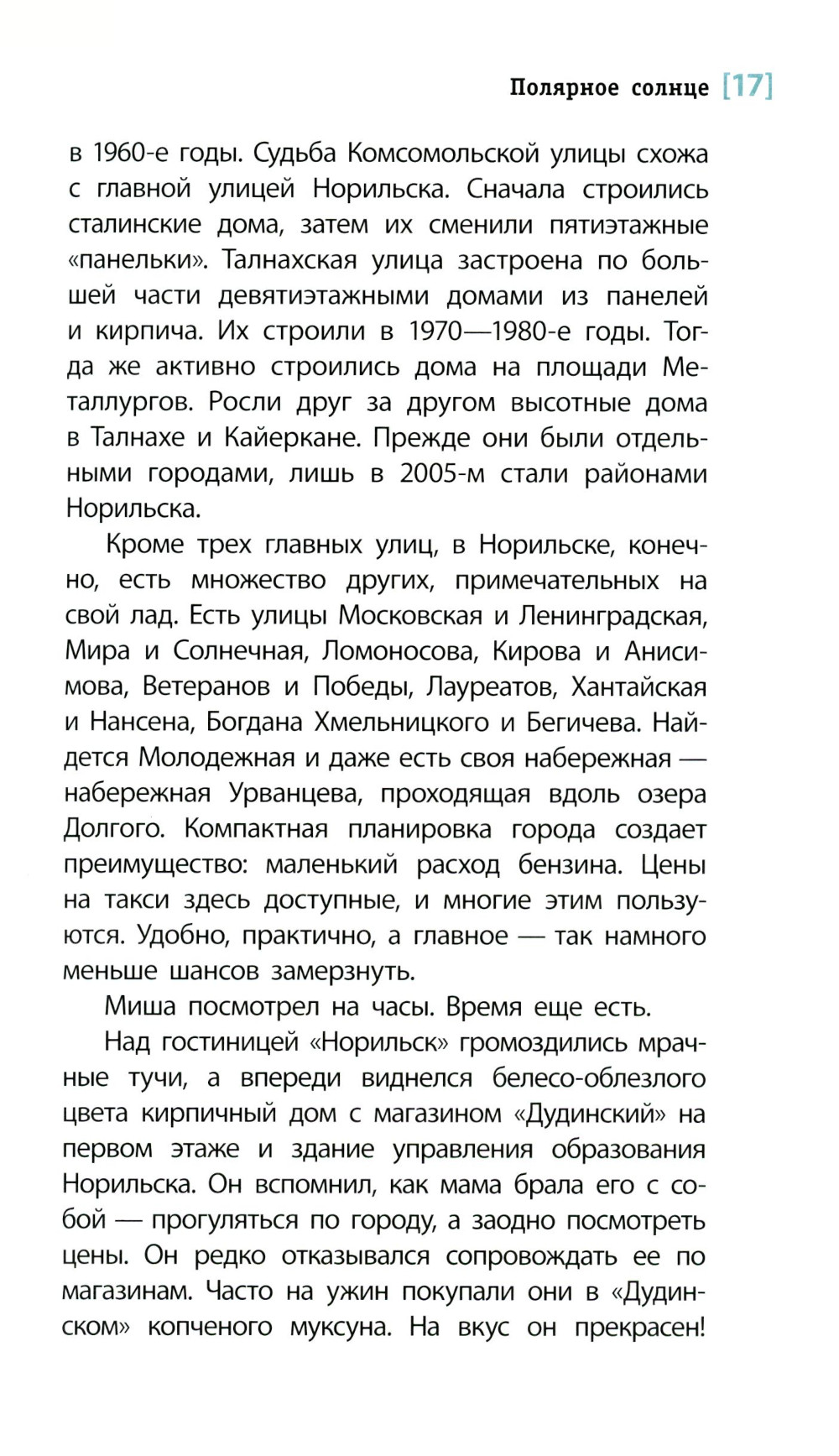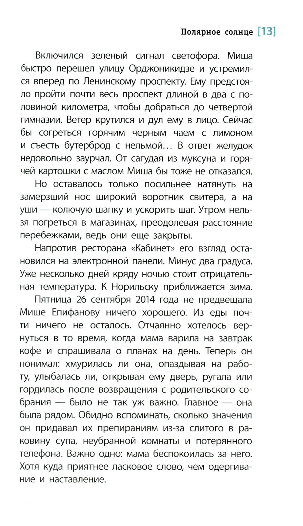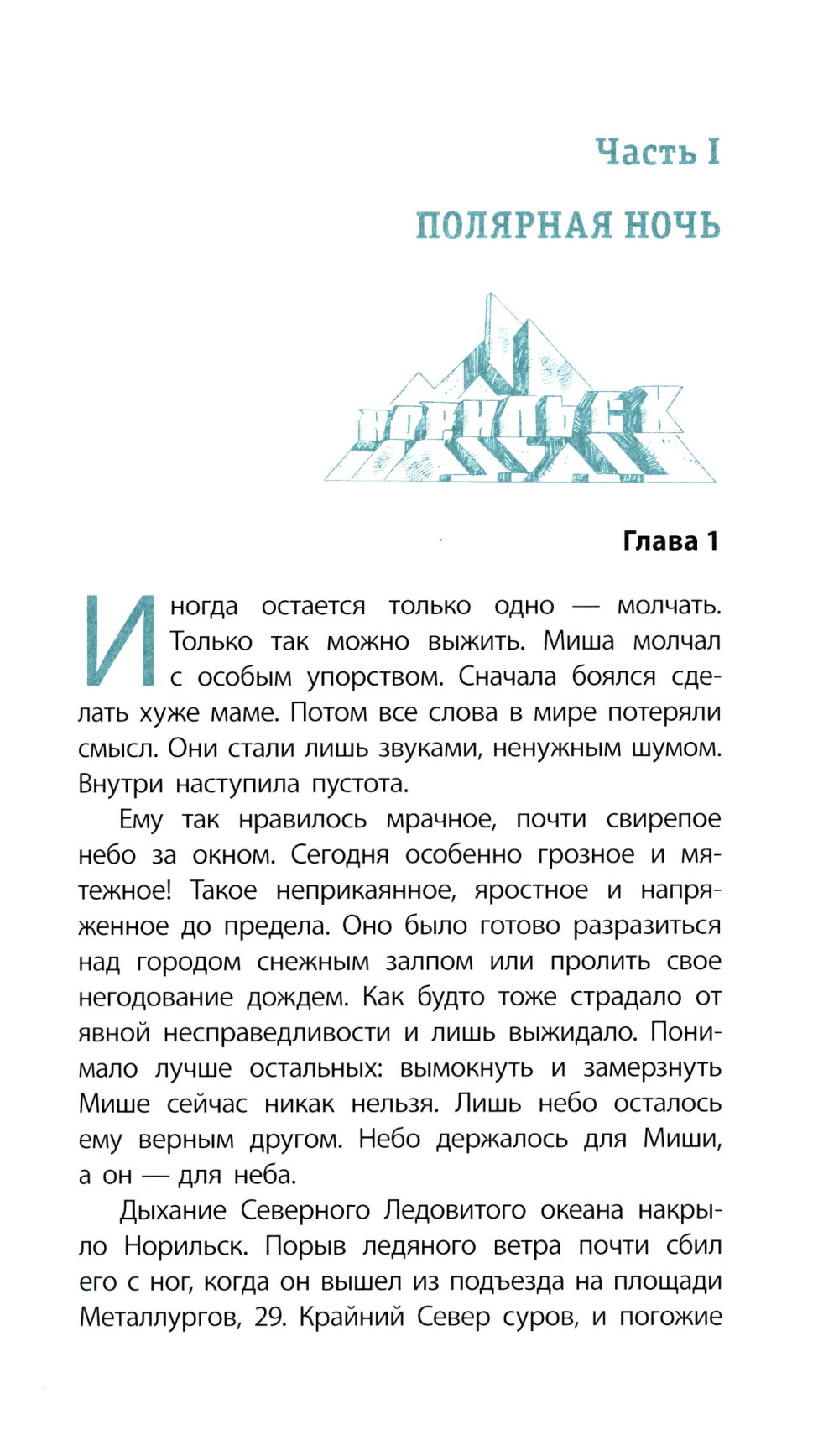 В самом северном городе мира Норильске климат суров. И жизнь не делает поблажек, даже если ты еще вроде бы ребенок. Мише не исполнилось и четырнадцати лет, но обстоятельства складываются так, что ему самому приходится думать о заработке, еде, теплой одежде. Как же, оказывается, раньше все было легко и просто! А теперь даже не у кого попросить помощи, и так тяжело делать вид, что у тебя по-прежнему всё в порядке. Для среднего и старшего школьного возраста.| Издательство | Детская литература |