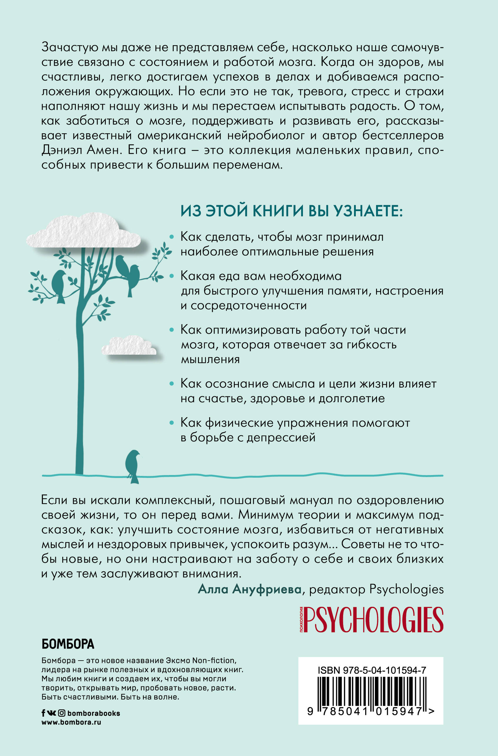 Зачастую мы даже не представляем себе, насколько наше самочувствие связано с состоянием и работой мозга. Когда он здоров, мы счастливы, легко достигаем успехов в делах и добиваемся расположения окружающих. Но если это не так, тревога, стресс и страхи наполняют нашу жизнь, и мы перестаем испытывать радость. О том, как заботиться о мозге, поддерживать и развивать его, рассказывает известный американский нейробиолог и автор бестселлеров Дэниэл Амен. Его книга - это коллекция маленьких правил, способных привести к большим переменам.| Издательство | ООО "Издательство "Эксмо" |