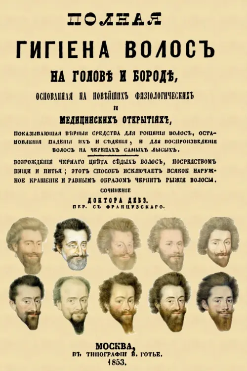Репринт с издания. Москва, тип. В. Готье, 1853. Соч. д-ра Дебэ; Пер. с фр. А. С. - Полная гигиена волос на голове и бороде, основанная на новейших физиологических и медицинских открытиях, показывающая верные средства для рощения волос, остановления падения их и седения, и для воспроизведения волос на черепах самых лысых. Возрождение черного цвета седых волос посредством пищи и питья; этот способ исключает всякое наружное крашение и равным образом чернить рыжие волосы. Тираж 30 экз. выполнен по технологии print-on-demand.