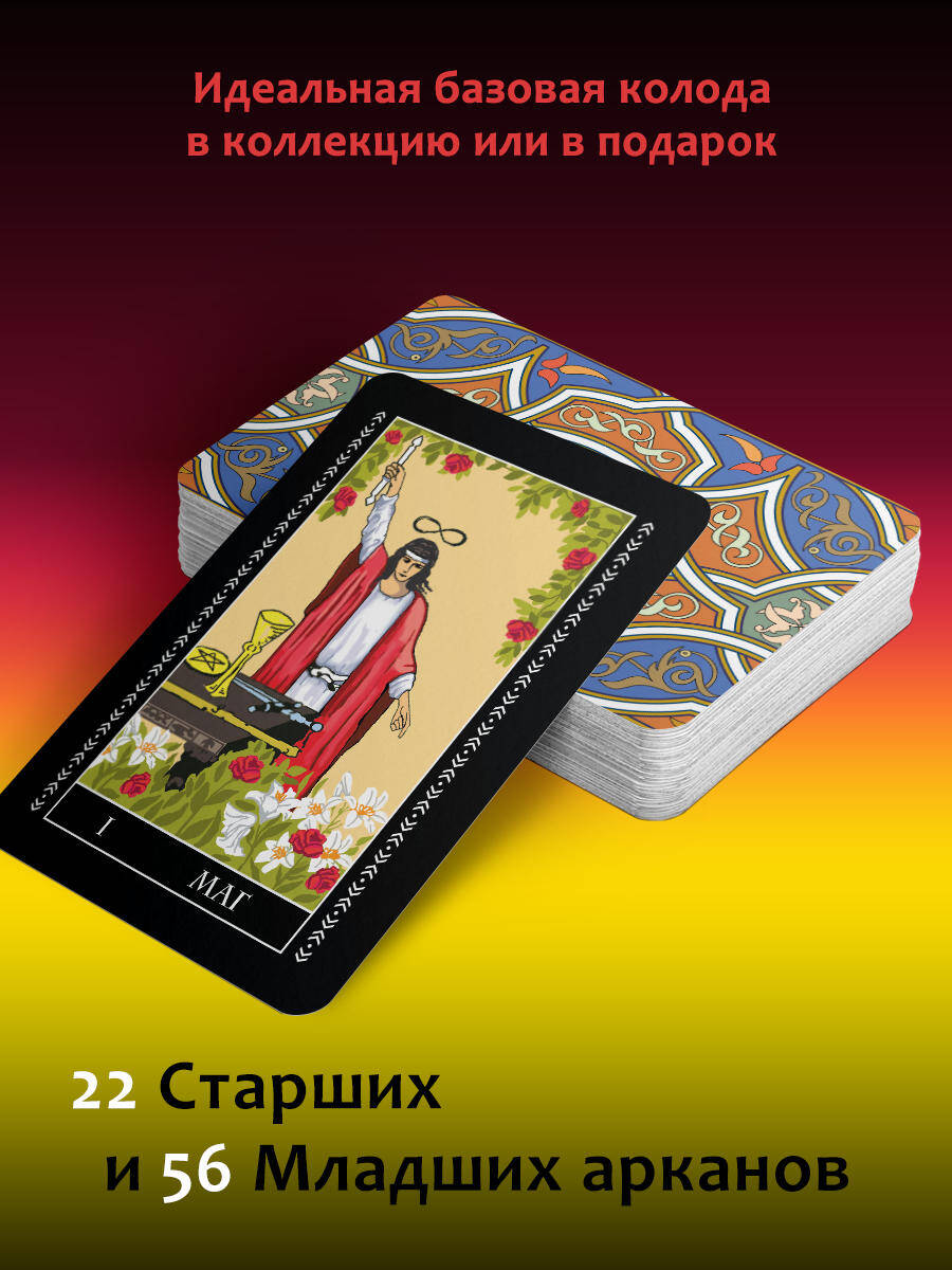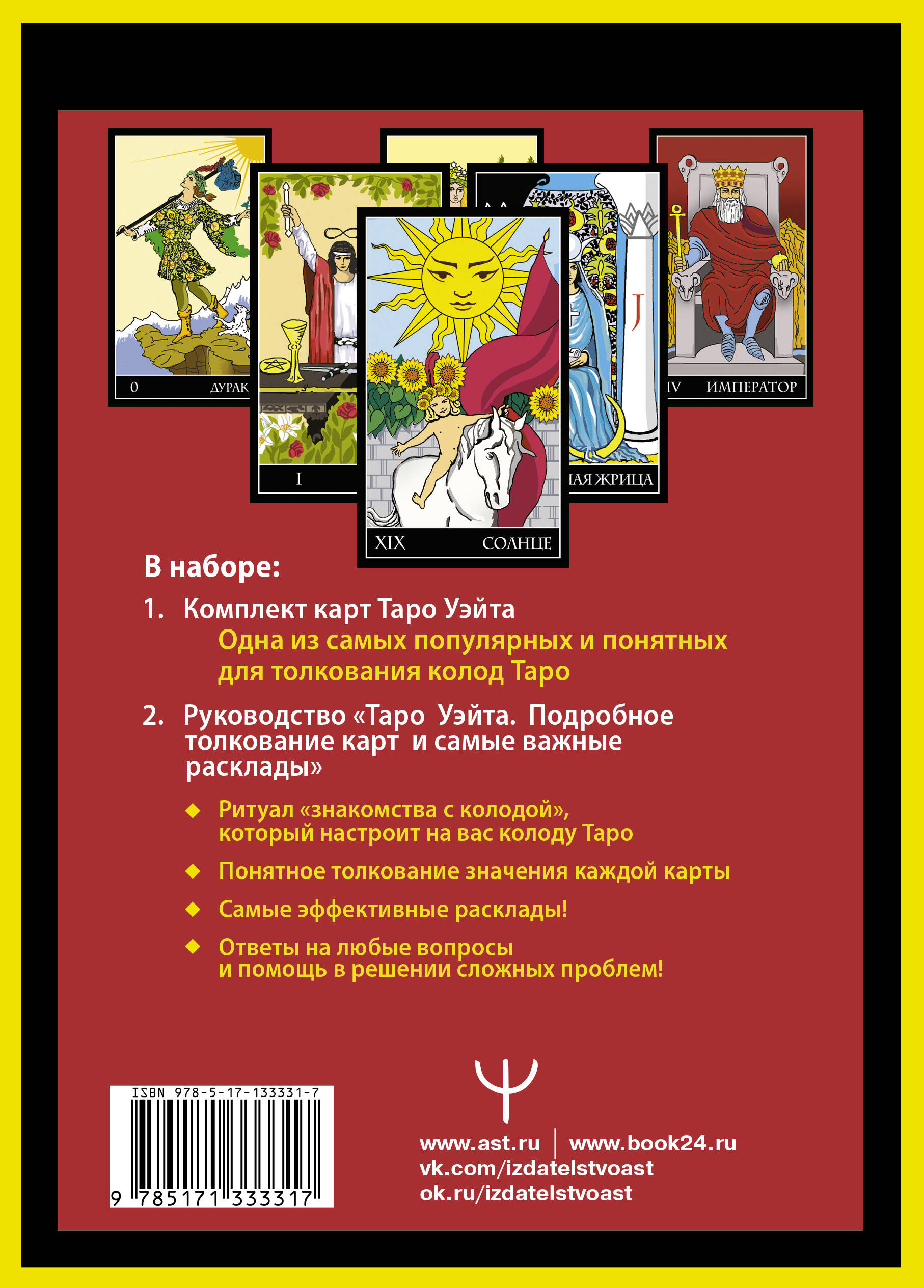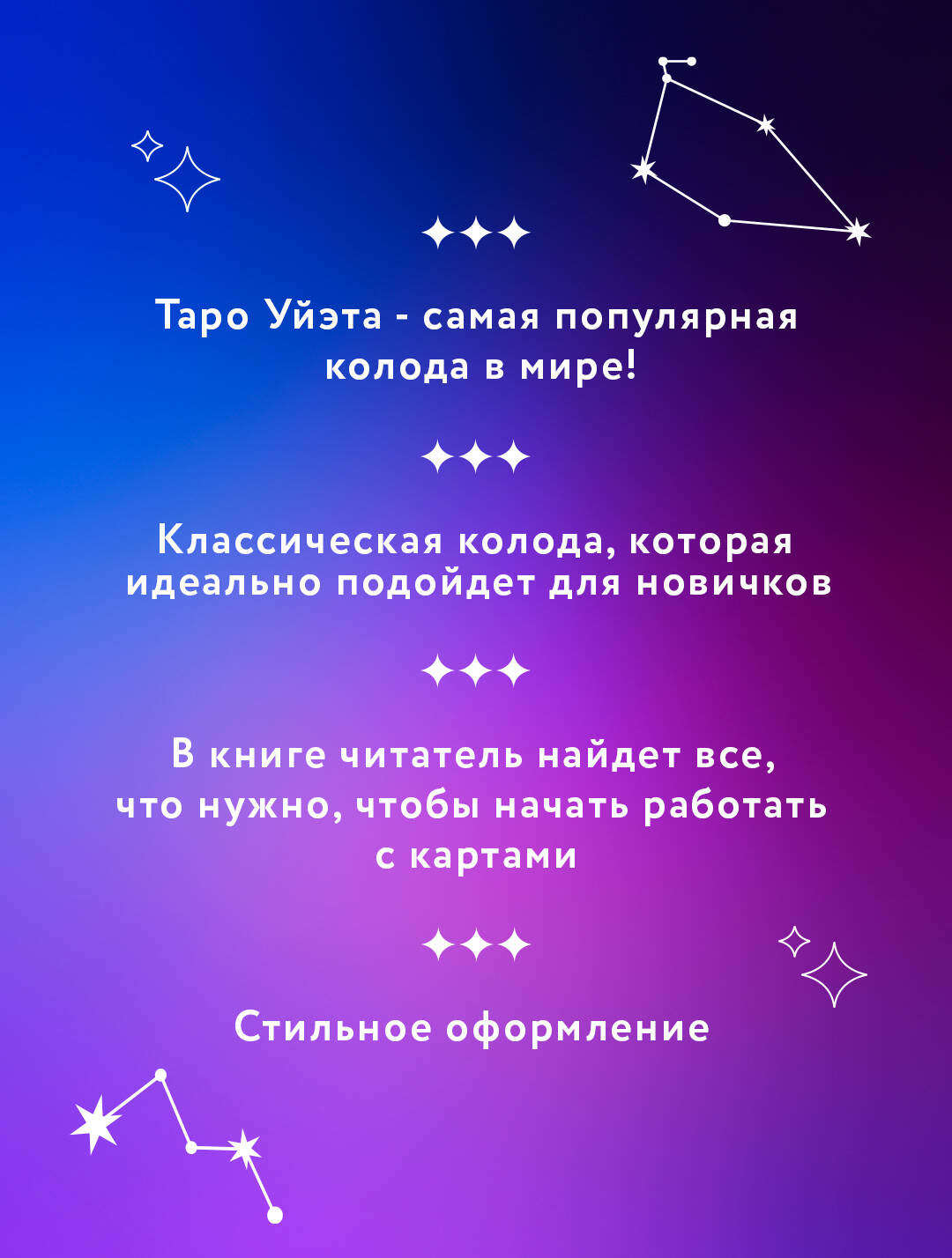 Таро Уэйта - одна из самых знаменитых колод Таро в мире! Ее создатель - известный исследователь Каббалы и мистических учений Артур Эдвард Уэйт. Образы карт, созданных Уэйтом, настолько просты и понятны, что могут дать правдивый ответ даже новичку в гадании. И в то же время Таро Уэйта - это серьезная эзотерическая практика, которая поможет вам разобраться в себе и своих чувствах, отделить истинные желания от ложных, найти свой путь в жизни, увидеть решение сложной ситуации и понять намерения других людей. В набор входят 78 красочных карт и полноцветная книга-инструкция для гадания. Из нее вы получите максимально достоверную информацию о толковании карт, узнаете, как правильно настроиться на колоду и задать вопрос, освоите наиболее эффективные расклады. Набор упакован в подарочную коробку с ложементом, благодаря которому колода не рассыпается, карты не перемешиваются.
