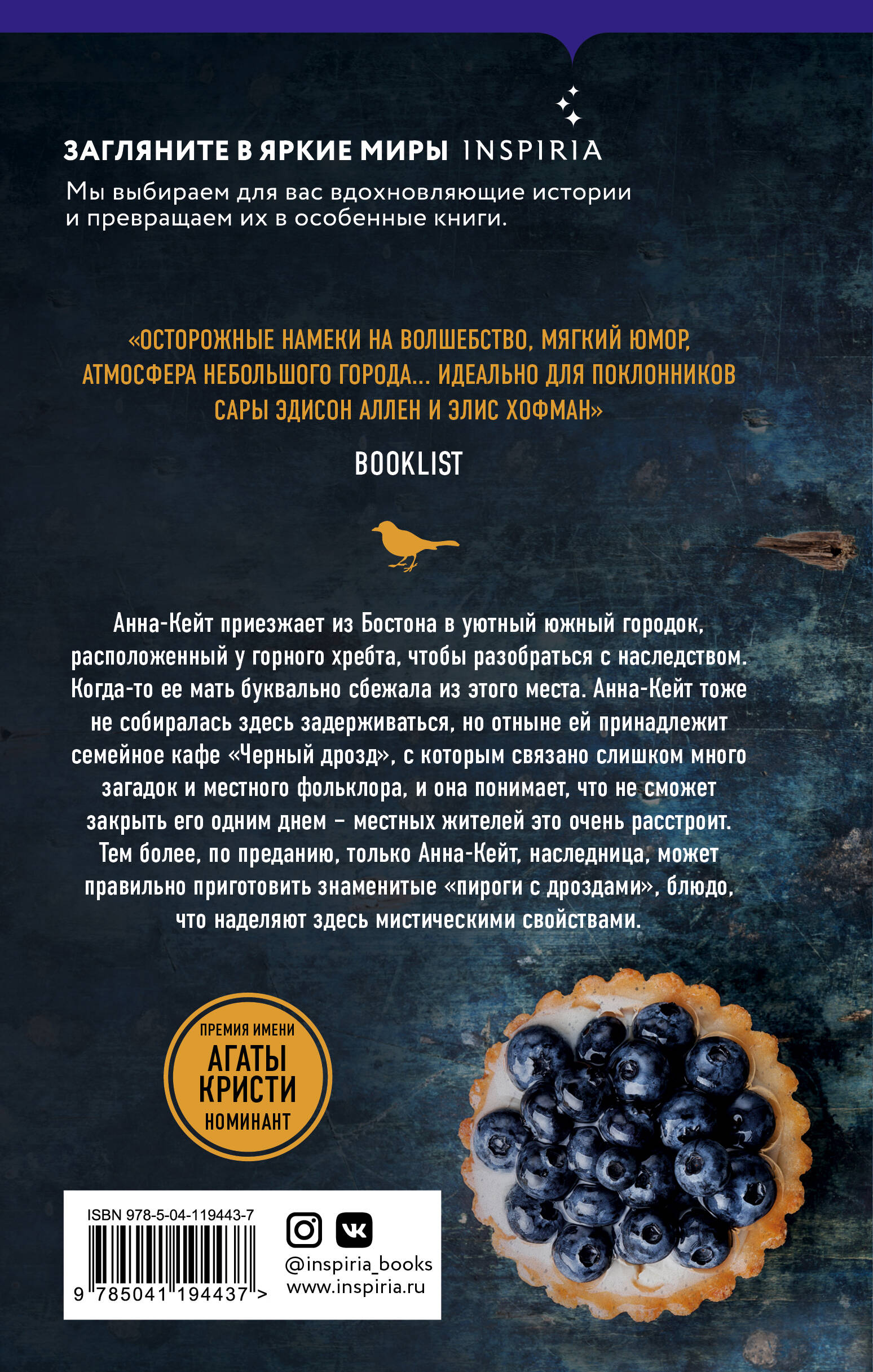 Анна-Кейт приезжает из Бостона в уютный южный городок, расположенный у горного хребта, чтобы разобраться с наследством. Когда-то ее мать буквально сбежала из этого места. Анна-Кейт тоже не собиралась здесь задерживаться, но отныне ей принадлежит семейное кафе "Черный дрозд", с которым связано слишком много загадок и местного фольклора, и она понимает, что не сможет закрыть его одним днем - местных жителей это очень расстроит. Тем более, по преданию только Анна-Кейт, наследница, может правильно приготовить знаменитые "пироги с дроздами", блюдо, что наделяют здесь мистическими свойствами. Осторожные намеки на волшебство, мягкий юмор, атмосфера небольшого, уютного города... идеально для поклонников Сары Эдисон Аллен и Элис Хофман. - Booklist Старинные секреты и шарм южного города... Чтение бодрит, как стакан чая с ежевикой. - Карен Уайт| Издательство | ООО "Издательство "Эксмо" |