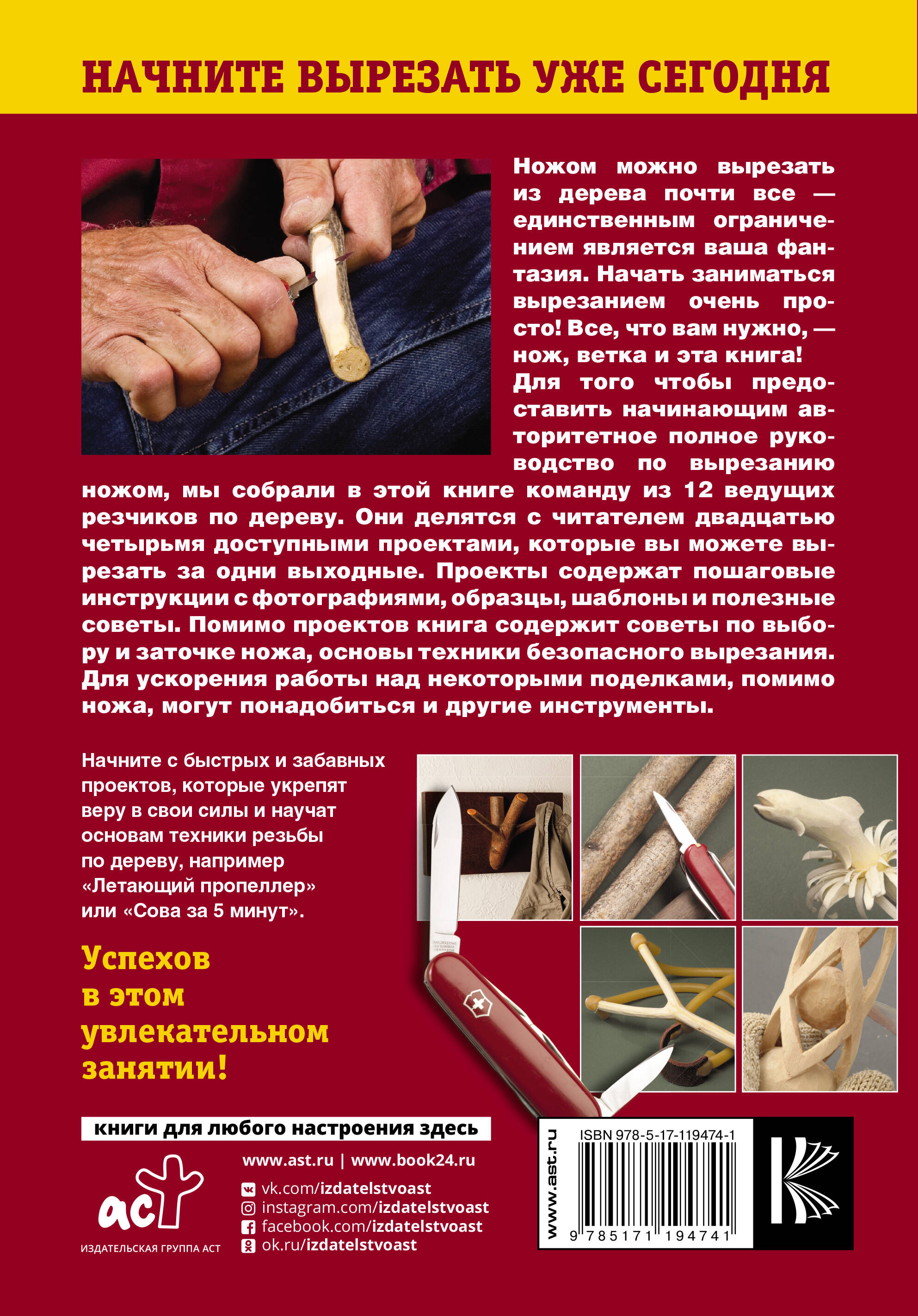 Мировой бестселлер «Полное руководство по вырезанию ножом для начинающих» написан 12 ведущими резчиками по дереву, обеспечивая максимально доступное и авторитетное введение в это увлекательное занятие. Книга предназначена широкому кругу читателей - от подростков до пенсионеров - всем, кто желает интересно и с пользой провести досуг, а также порадовать близких забавными резными поделками. В частности, это руководство идеально подойдет для семейного творчества - все проекты подходят для того, чтобы мастерить вместе с детьми.| Издательство | Издательство "АСТ" |