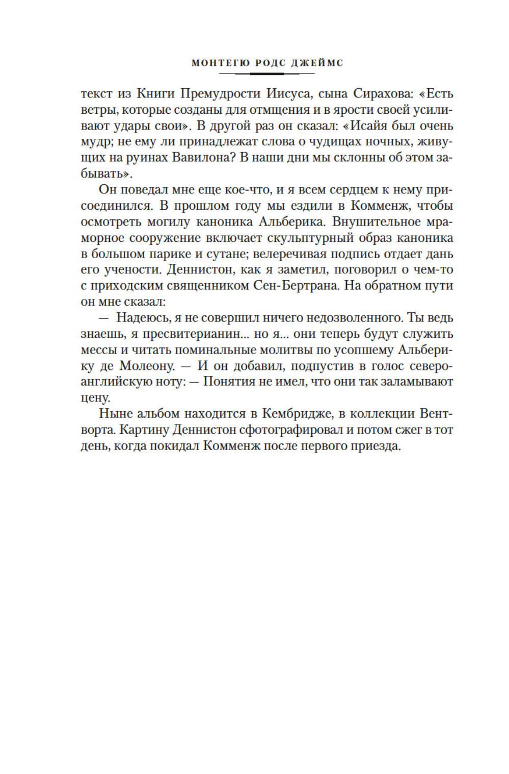 Сегодня имя английского прозаика Монтегю Родса Джеймса известно, пожалуй, каждому поклоннику рассказов о привидениях (ghost stories), а его сравнительно небольшое литературное наследие, созданное в 1890-1930-е годы, считается важной вехой в истории этого жанра. Эрудированный ученый и талантливый педагог, не одно десятилетие проработавший в Кембриджском университете и Итонском колледже, авторитетный специалист в целом ряде областей гуманитарного знания, он снискал прижизненную славу как основоположник особой «антикварной» ветви готического рассказа, живописующей старинные особняки, церкви и соборы, колледжи и музеи, архивы и библиотеки. В этот очаровательный и уютный мир «доброй старой Англии», однако, то и дело вторгаются ледяные потусторонние ветры и являются неведомые создания - странные, жуткие и враждебные человеку. Верный почитатель и последователь Джозефа Шеридана Ле Фаню, Джеймс в свою очередь проложил дорогу творчеству Говарда Филлипса Лавкрафта, высоко ценившего его новеллистику. В настоящий том включена практически вся малая проза М. Р. Джеймса: четыре канонических сборника рассказов, увидевшие свет между 1904 и 1925 годом, ряд произведений, изданных позднее, и несколько статей, иллюстрирующих взгляды автора на избранный им литературный жанр. Значительная часть рассказов печатается в новых переводах, предисловия к сборникам и большинство статей переведены на русский язык впервые. Издание подробно комментировано.| Издательство | Азбука |