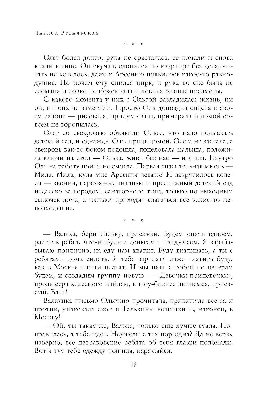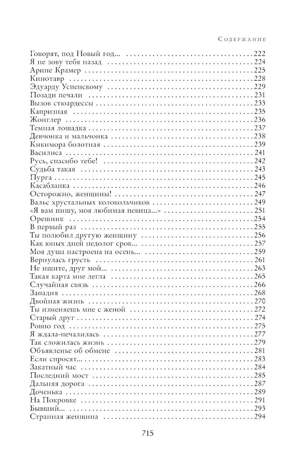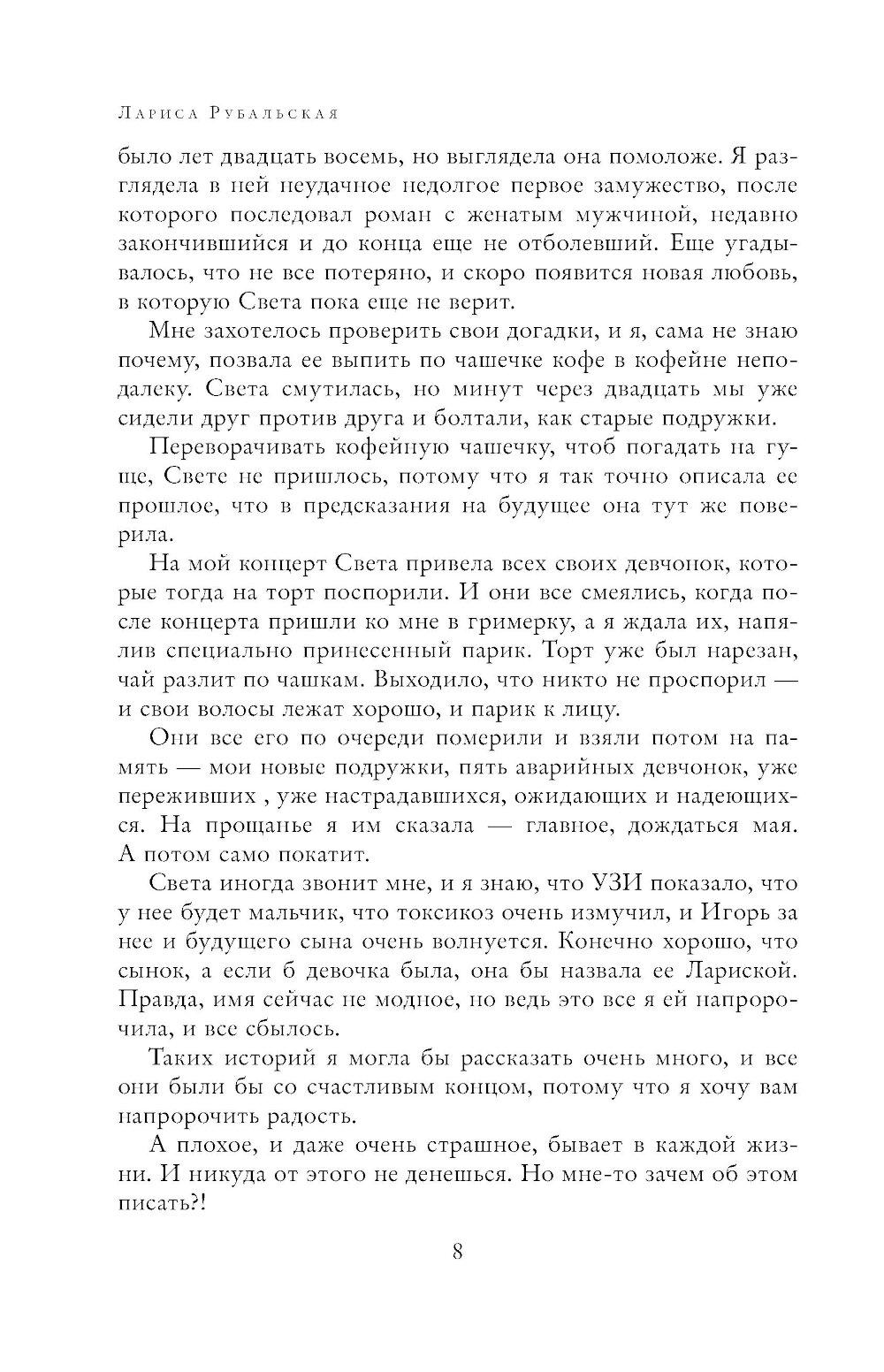 Лариса Рубальская, о чем бы ни говорила на концертах, в телевизионных программах, ни писала в стихах и прозе, - всегда ведет задушевный доверительный разговор с читателями, слушателями. Этим, наверное, и объясняются неизменная любовь и постоянство ее читательской и зрительской аудитории. В это одно из наиболее полных собраний произведений автора вошли песни, стихи и рассказы Л. Рубальской, уже полюбившиеся публике и совсем новые.| Издательство | Эксмо |