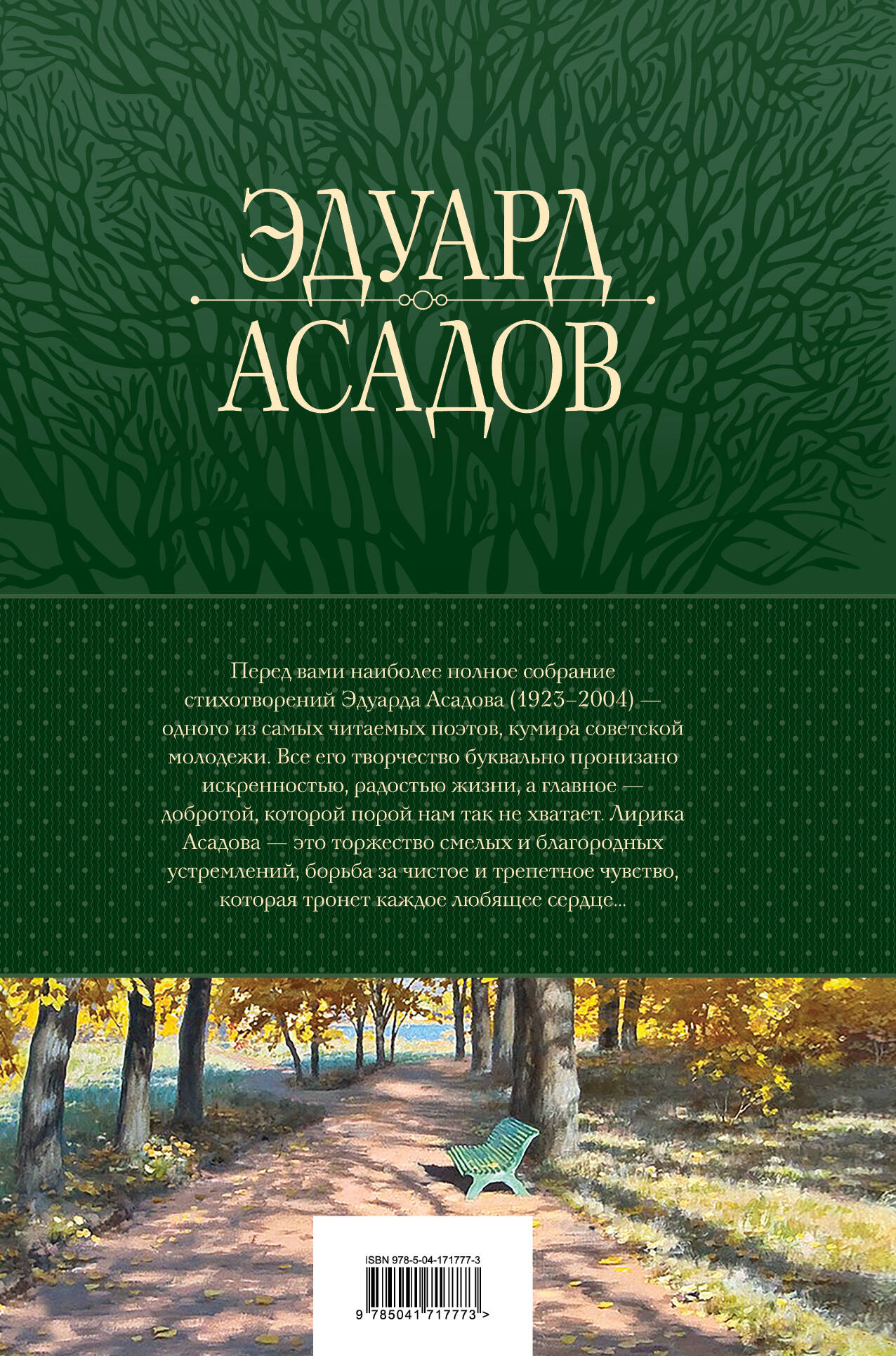 Перед вами наиболее полное собрание стихотворений Эдуарда Асадова (1923 - 2004) - одного из самых читаемых поэтов, кумира советской молодежи. Все его творчество буквально пронизано искренностью, радостью жизни, а главное - добротой, которой, порой, нам так не хватает. Лирика Асадова - это торжество смелых и благородных чувств, борьба за чистое и трепетное чувство, которая тронет каждое любящее сердце…| Издательство | ООО "Издательство "Эксмо" |