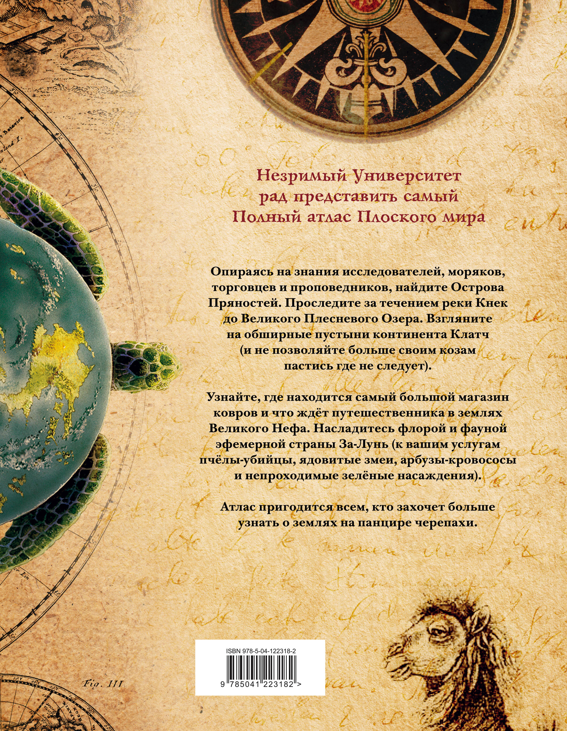 Для всех фанатов Терри Пратчетта: цветной атлас в комплекте с огромной картой Плоского мира! Исследование волшебников Незримого Университета и мастера юмористического фэнтези! Народы и их обычаи, флора и фауна, самые абсурдные существа самых абсурдных земель на панцире черепахи. Полноцветные иллюстрации, карты и подробный справочник, а также огромная карта всего Плоского мира. Мелочи, о которых вы не догадывались, локации, о которых не подозревали. Незримый Университет рад представить самый Полный атлас Плоского мира! Опираясь на знания исследователей, моряков, торговцев и проповедников, найдите Острова Пряностей. Проследите за течением реки Кнек до Великого Плесневого Озера. Взгляните на обширные пустыни континента Клатч (и не позволяйте больше своим козам пастись где не следует). Узнайте, где находится самый большой магазин ковров и что ждёт путешественника в землях Великого Нефа. Насладитесь флорой и фауной эфемерной страны За-Лунь (к вашим услугам - пчёлы-убийцы, ядовитые змеи, арбузы-кровососы и непроходимые зелёные насаждения).| Издательство | ООО "Издательство "Эксмо" |